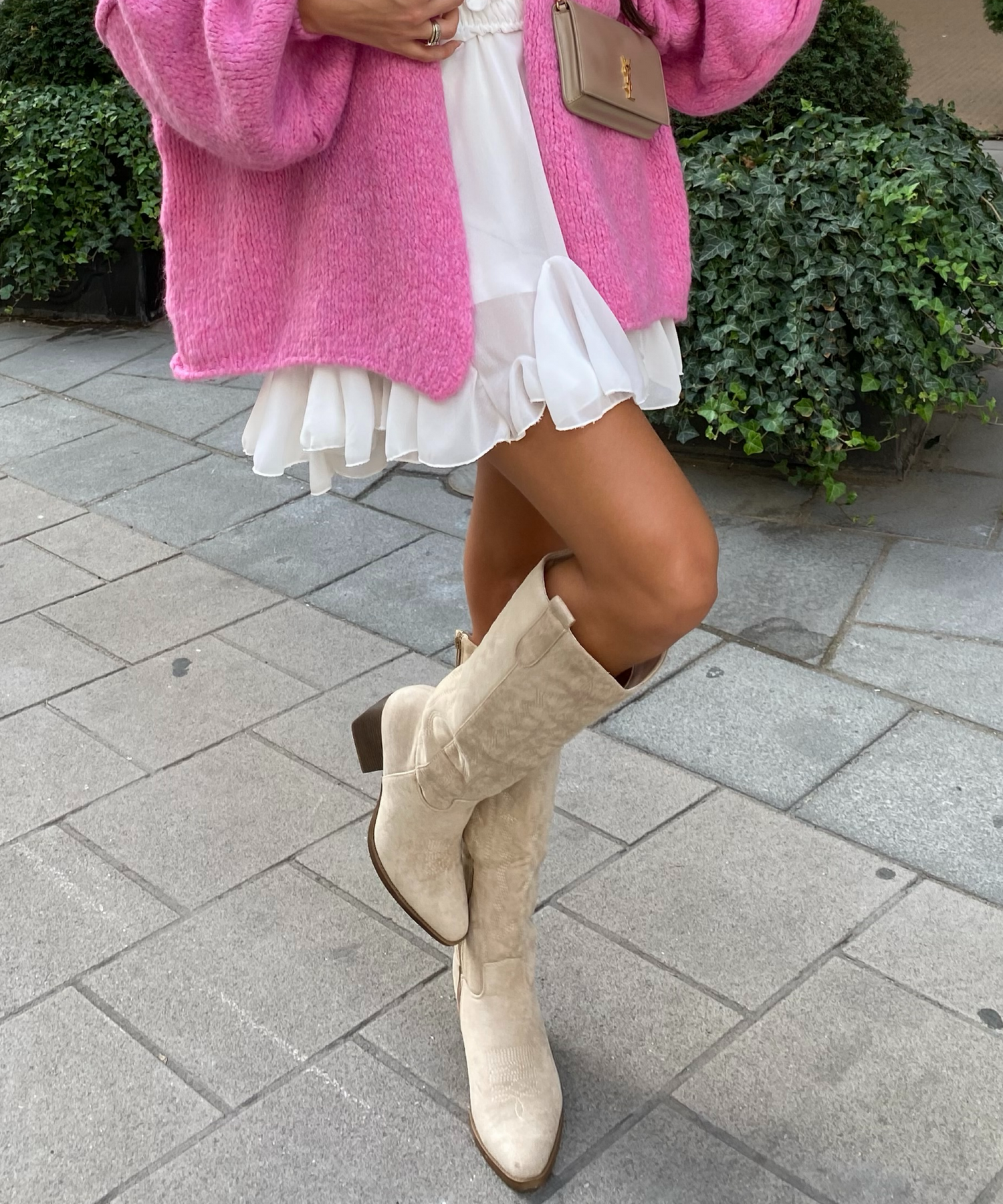 Extrem bequeme Cowboy Stiefel. Mit butterweichem Kunst Wildleder. Fallen normal aus. Gesamtlänge 47cm. Absatz 6,5cm.