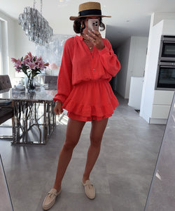 Schöner Musselin Einteiler aus 100% Baumwolle mit integrierter Hose und dehnbarem Gummibund. Einheitsgröße passt den Größen XS-L. Model ist 1.65m.