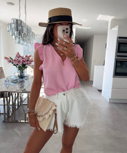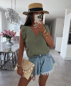 Musselin Top aus 100% Baumwolle. Passt den Größen XS-L. Model ist 1,65m groß.