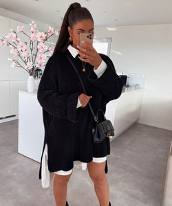 Oversize Pullover mit weichem Stoff. Einheitsgröße passt XS-XXXL. Hinten etwas länger sodass der Pullover den kompletten Po bedeckt.