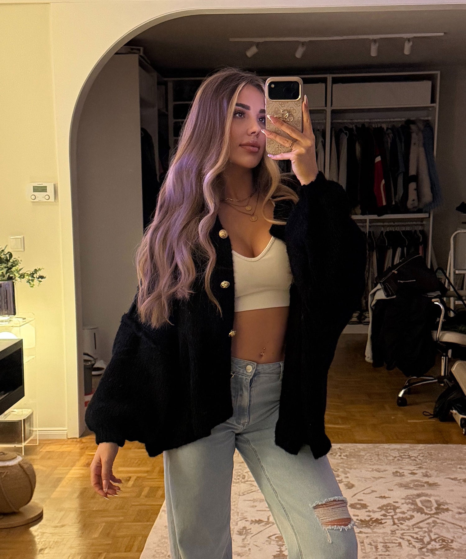 Der perfekte Artikel, um im Winter nicht nur stylisch auszusehen, sondern gleichzeitig auch kuschelig warm gehalten zu werden. Super schöne Strickjacke mit edlen goldenen Knöpfen im oversize Look. Stoff EXTREM weich. Die Jacke hat an den Ärmeln am Handgelenk einen eingenähten Gummibund.
