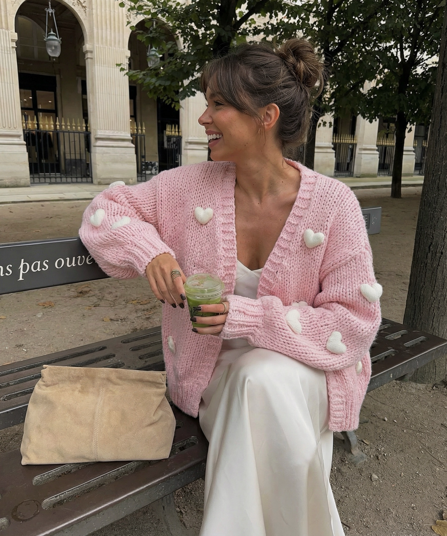Weiche Strickjacke mit Herzchen. Passt XS-M. Model ist 1,65m.