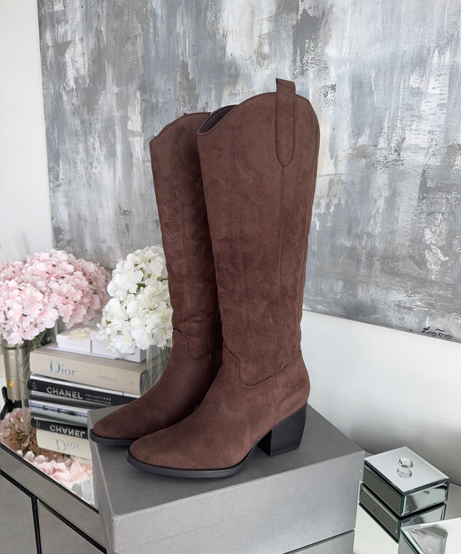 Extrem bequeme Cowboy Stiefel. Mit butterweichem Kunst Wildleder. Fallen normal aus.