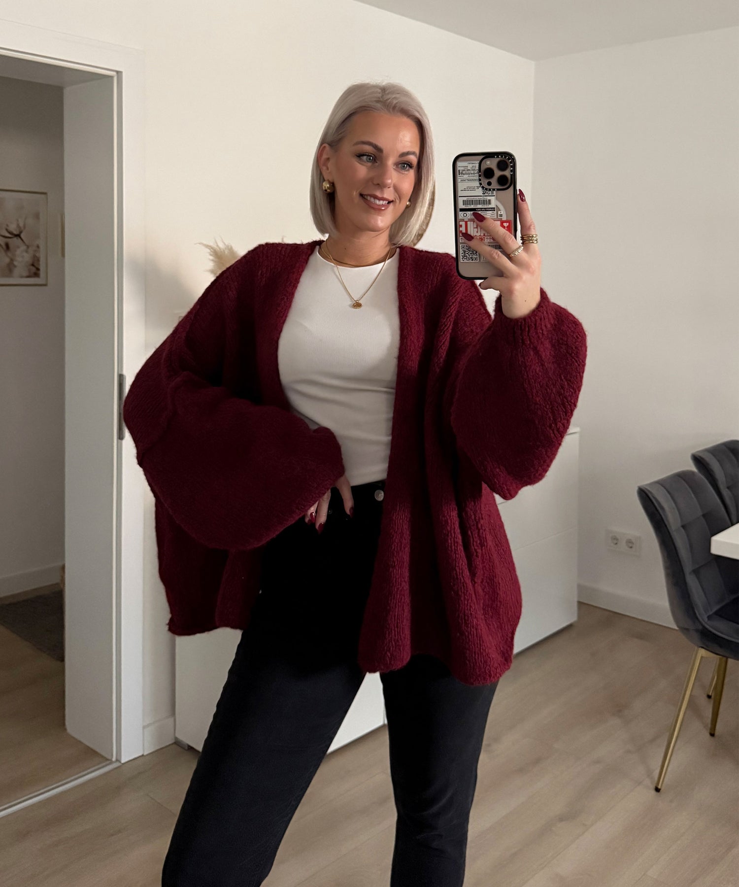 Extrem weicher Cardigan hält sehr warm. Model eins ist 1.69m groß. Passt den Größen XS-XXXL.