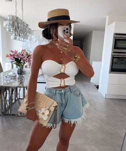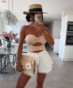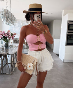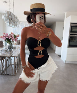 Fällt normal aus. Mit Brustpads. Dehnbarer Stoff. Lässt sich unten öffnen. Model ist 1,65m groß und trägt Größe SM.