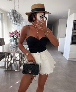Fällt normal aus. Sehr dehnbarer Stoff. Unten zum öffnen. Verstellbare Träger. Model ist 1,65m groß und trägt Größe SM.