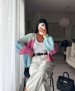Extrem weicher Cardigan. Dehnbarer Stoff passt den Größen XS-XXL. Model ist 1.65m.