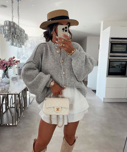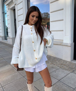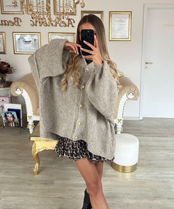 Der perfekte Artikel, um im Winter nicht nur stylisch auszusehen, sondern gleichzeitig auch kuschelig warm gehalten zu werden. Super schöne Strickjacke mit edlen goldenen Knöpfen im oversize Look. Stoff EXTREM weich. Die Jacke hat an den Ärmeln am Handgelenk einen eingenähten Gummibund.