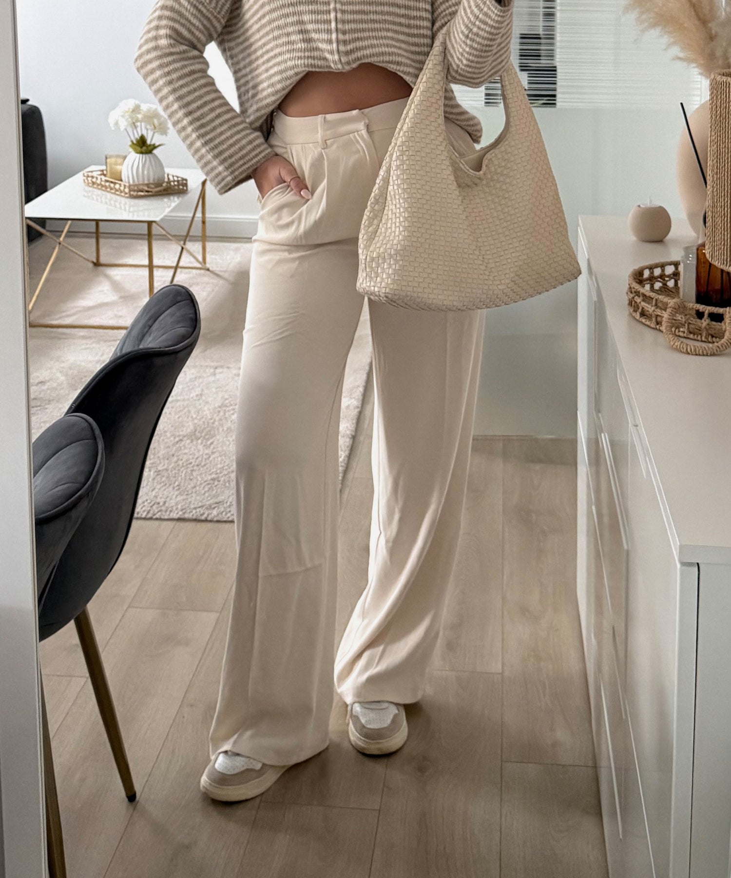 Fällt etwas kleiner aus. Model eins ist 1,68m und trägt Größe S. Model zwei (blond) ist 1,76m groß und trägt Größe L. Perfekt AB Größe 1,70m. Gesamtlänge ca. 112cm.