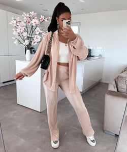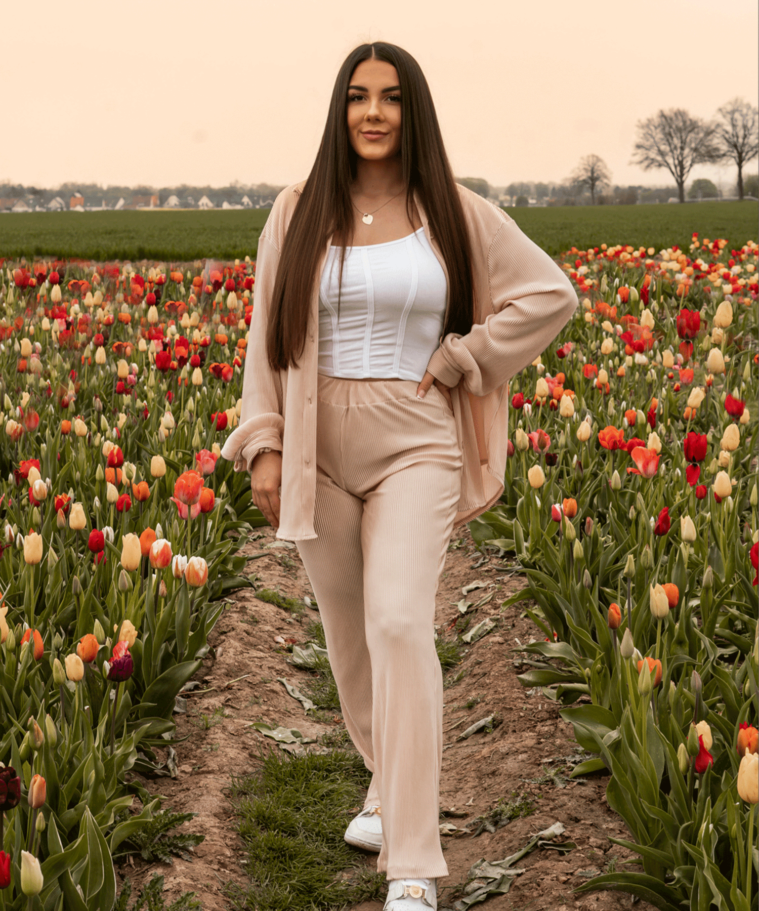 Super bequemes Set mit einem dehnbaren Gummibund. Das Set ist in einer Einheitsgröße und passt den Größen XS-M. Der Stoff ist sehr leicht und angenehm auf der Haut. Model eins ist 1.65m.