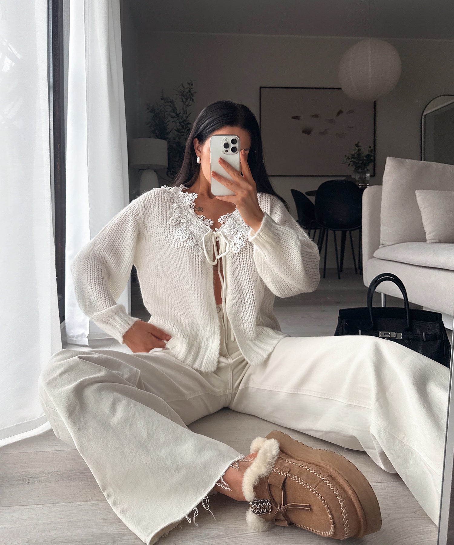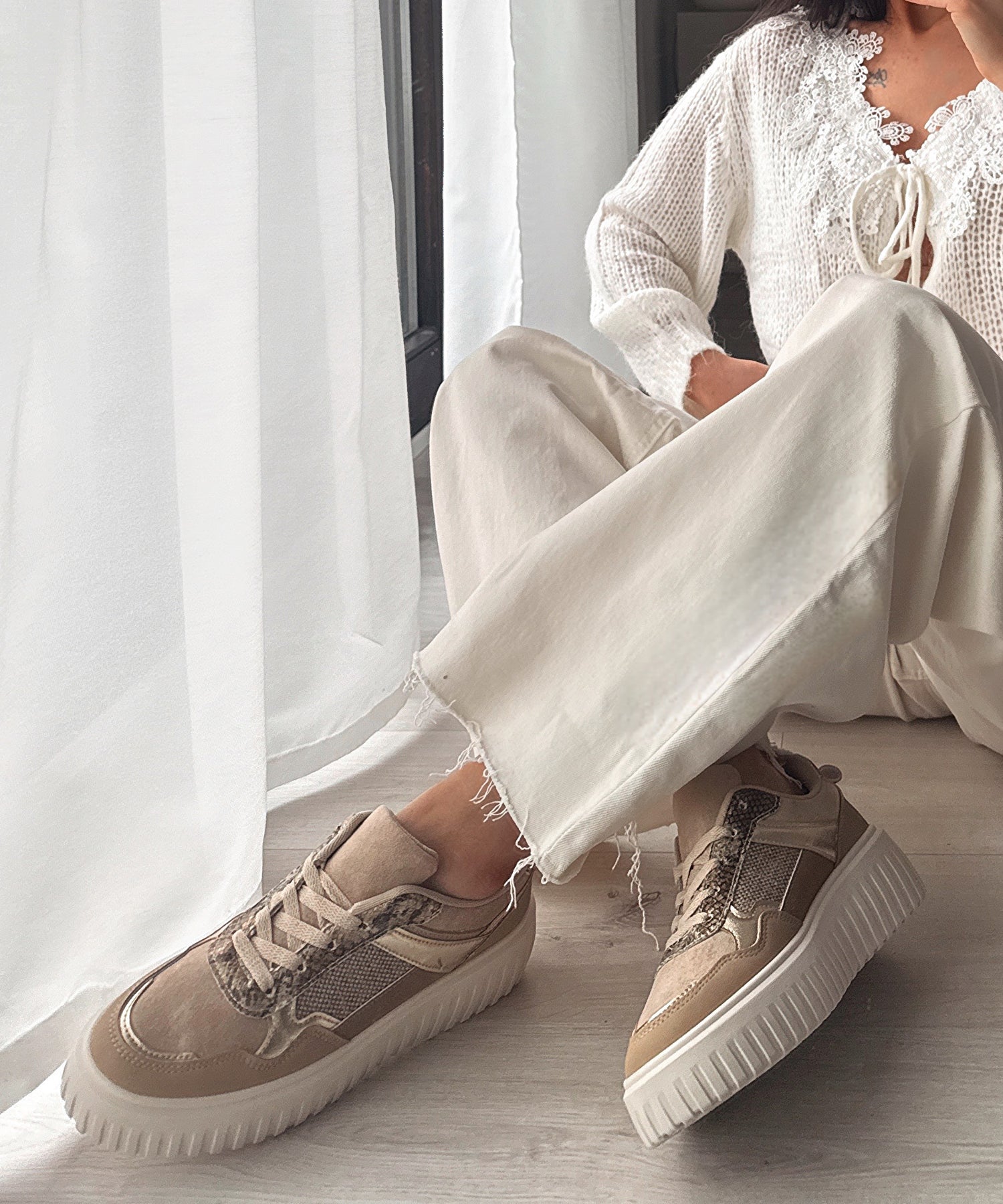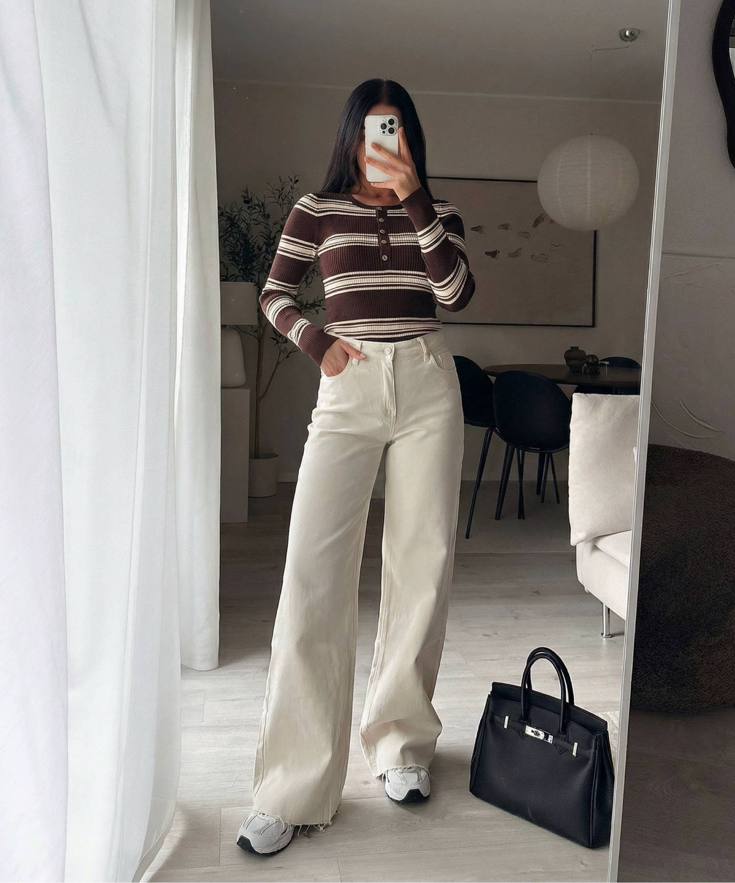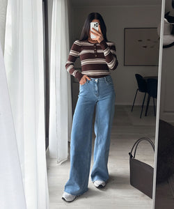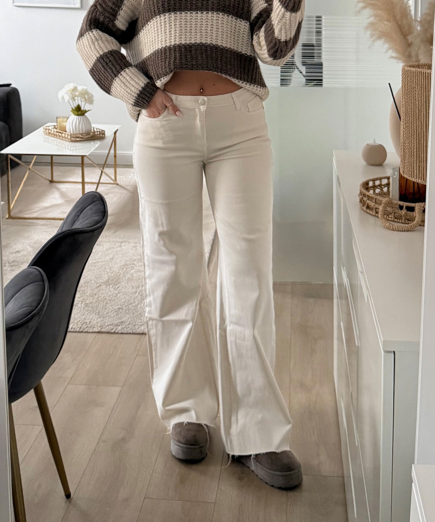 Extra Long Stretch Mid Waist Wide Leg Jeans Zerra Beige
