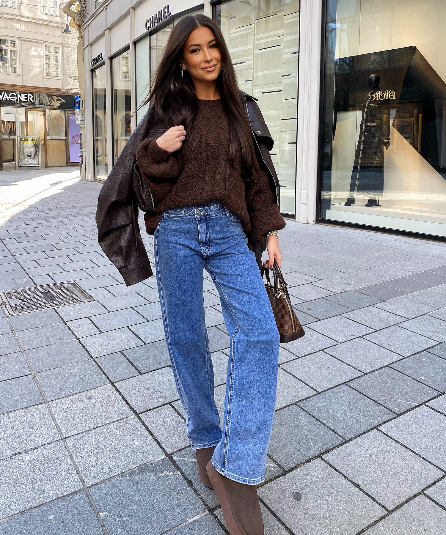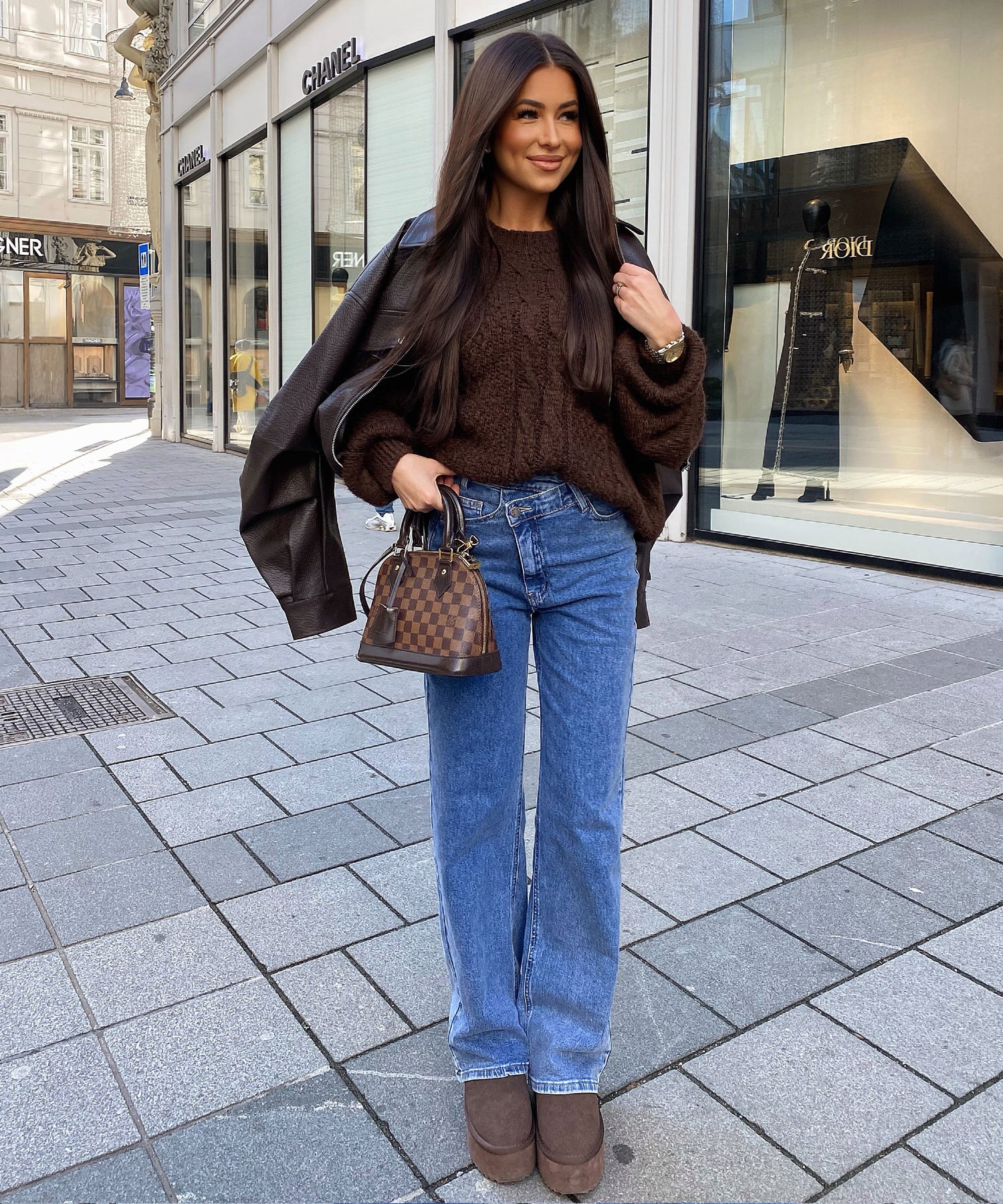 Fällt normal aus. Enthält viel Stretch und ist daher super bequem. Model eins ist 1,69m groß und trägt Größe S.
