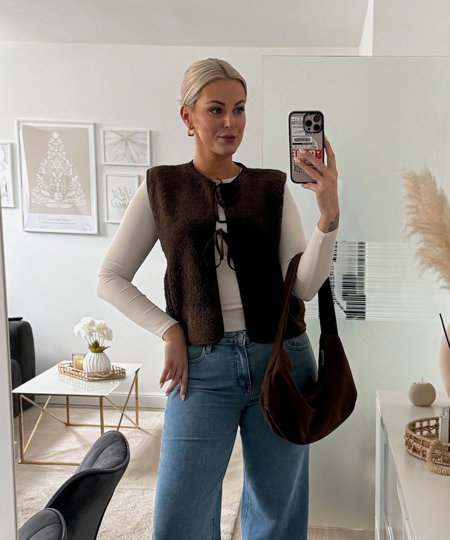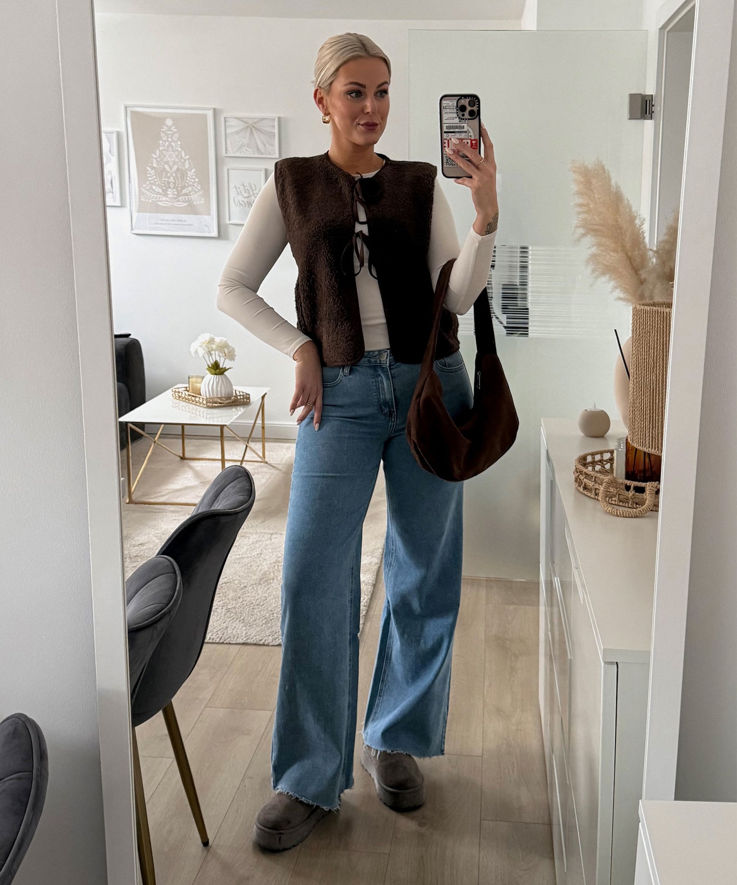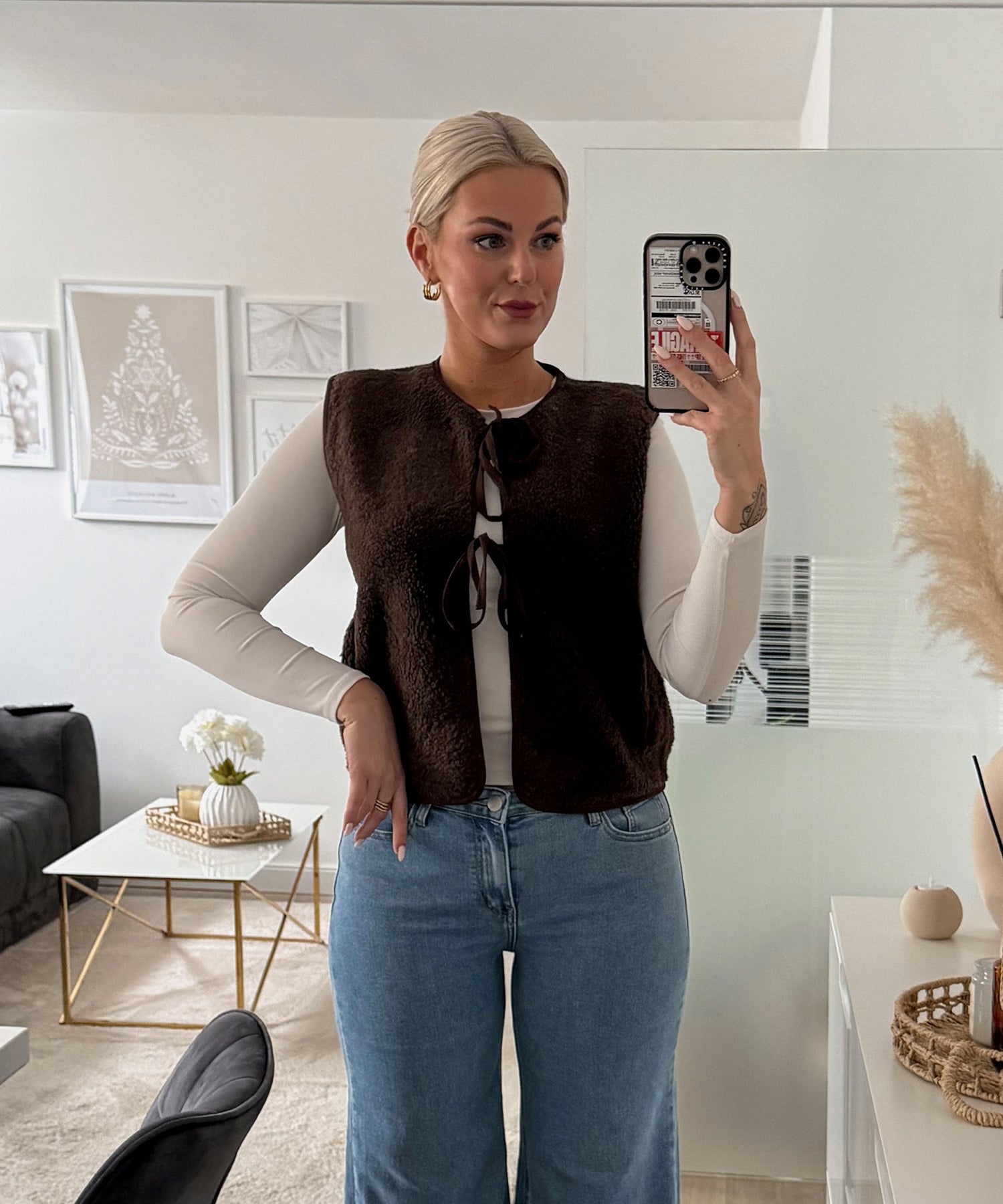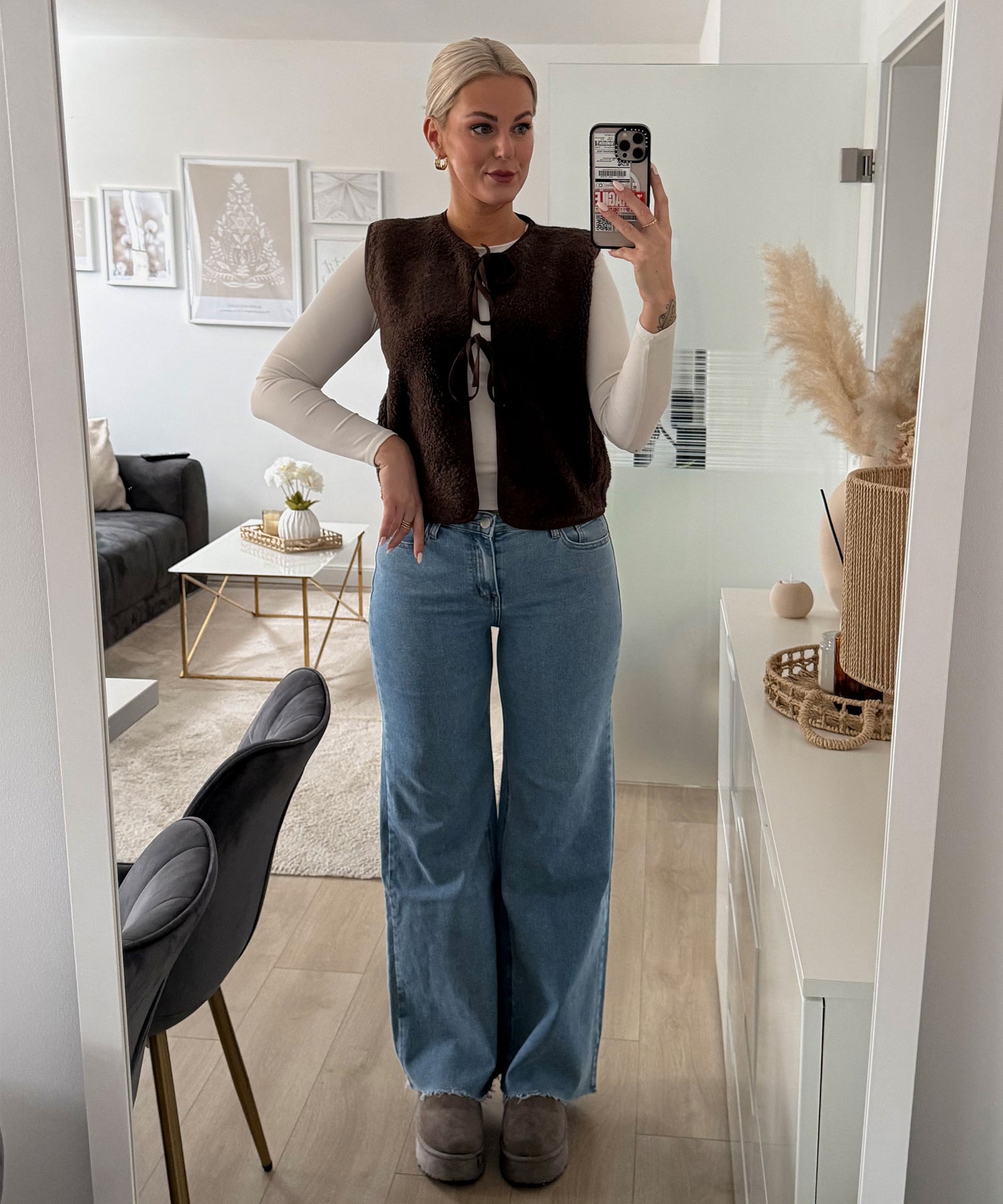 Enthält viel Stretch daher super bequem. Fällt normal aus. Model eins ist 1,68m und trägt Größe S.