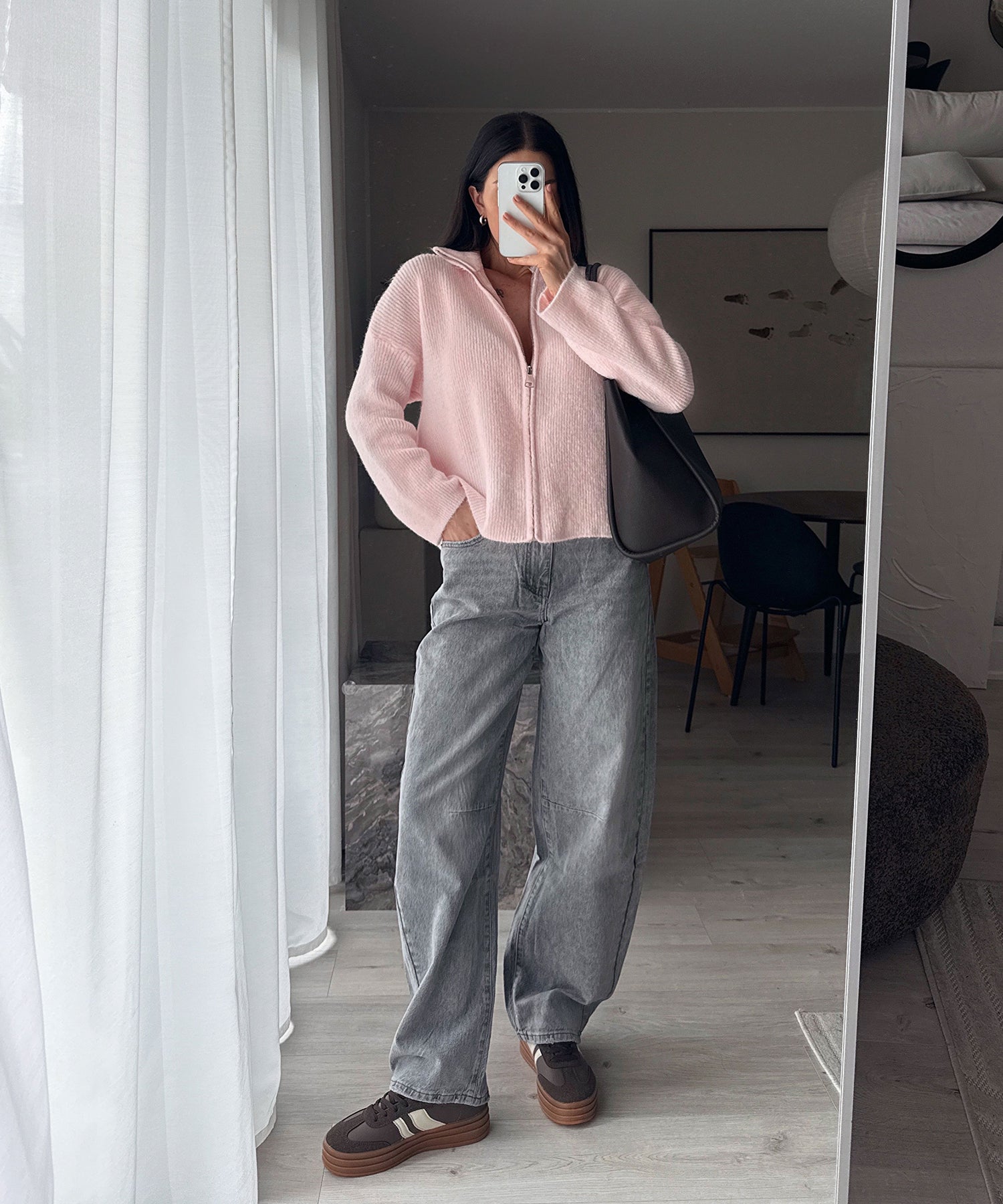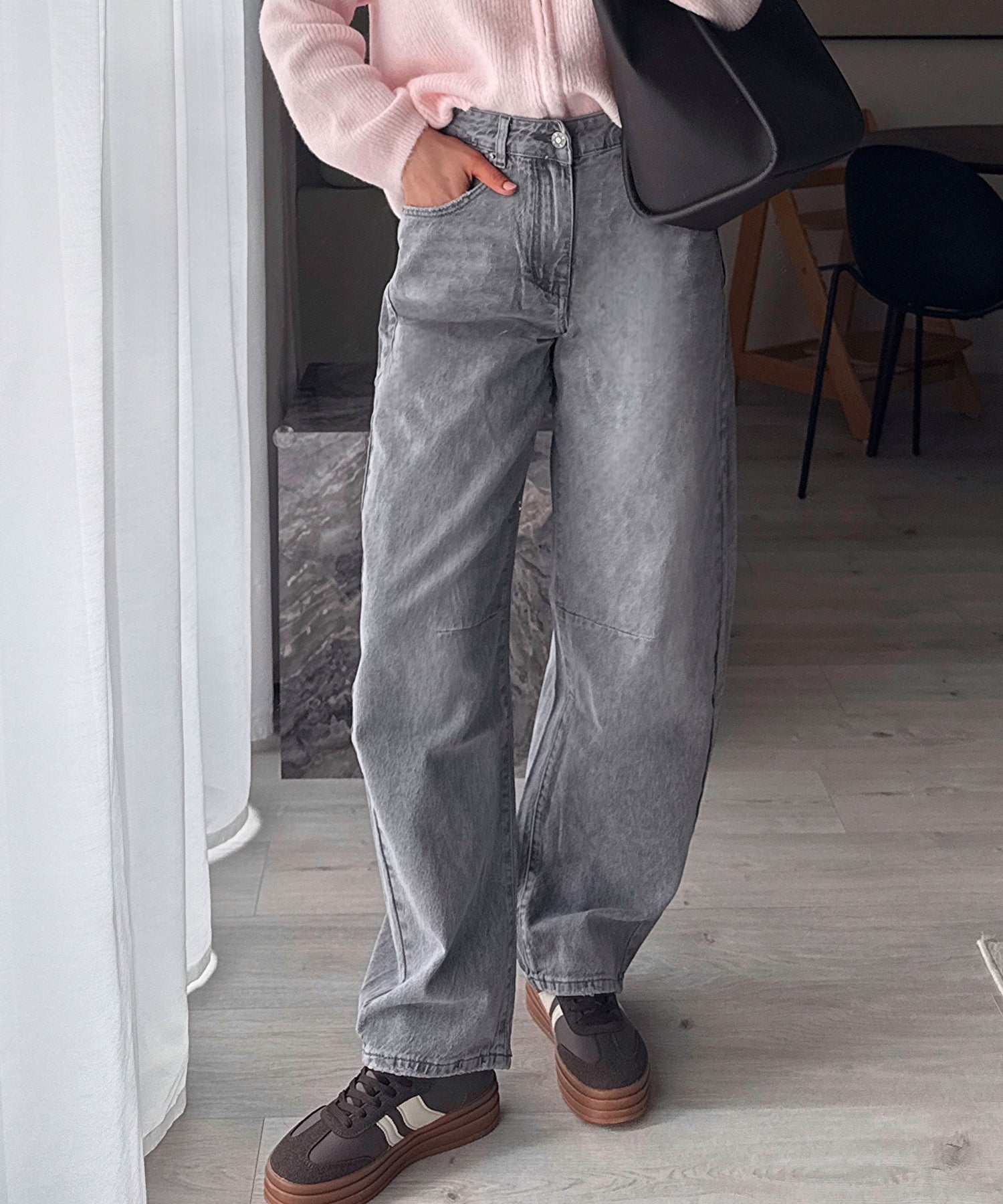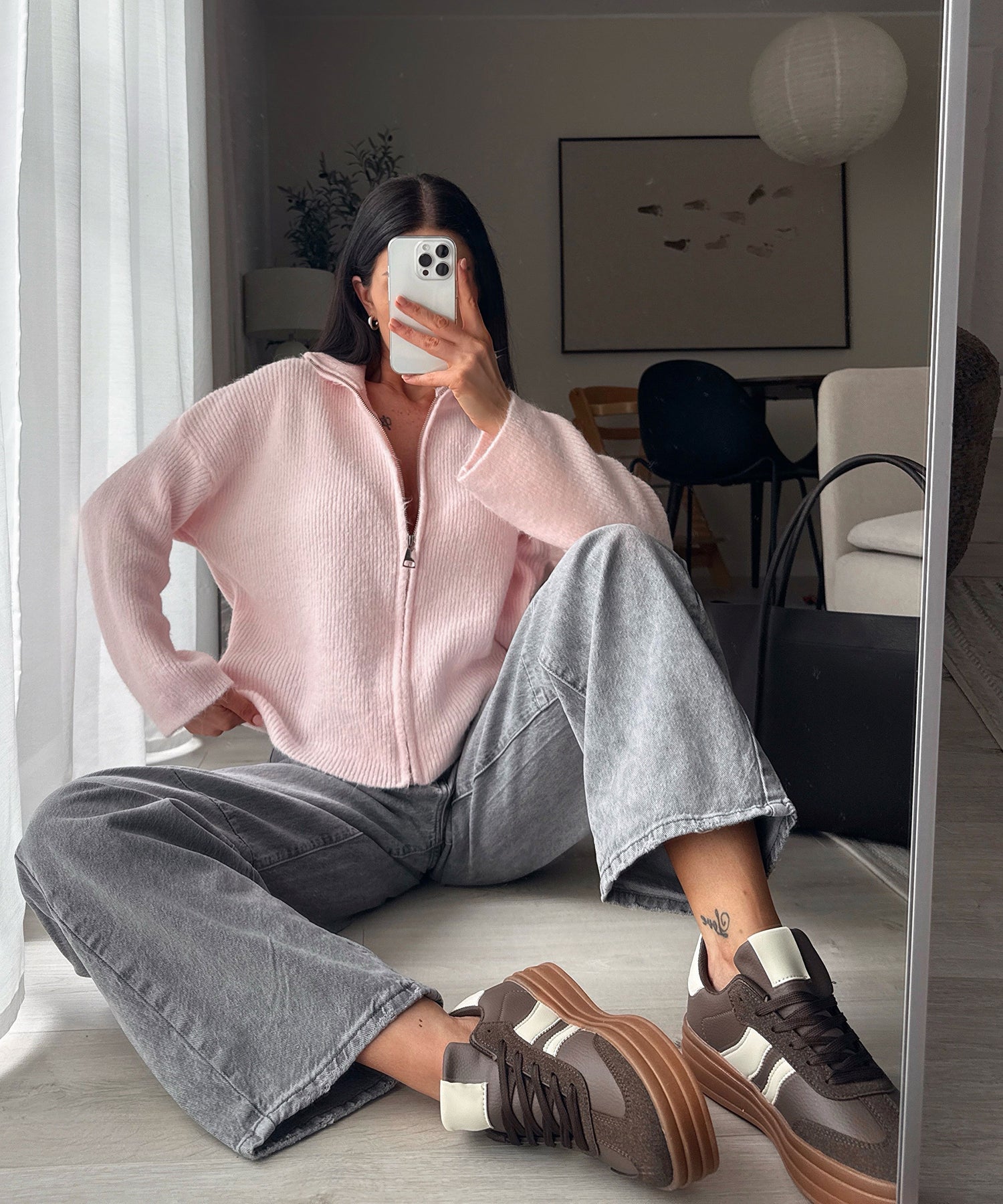 Fällt normal aus. Enthält viel Stretch und ist daher super bequem. Model ist 1,65m groß und trägt Größe S. Model zwei ist 1,68m und trägt Größe S. Kann man normal oder hochgekrempelt getragen werden.