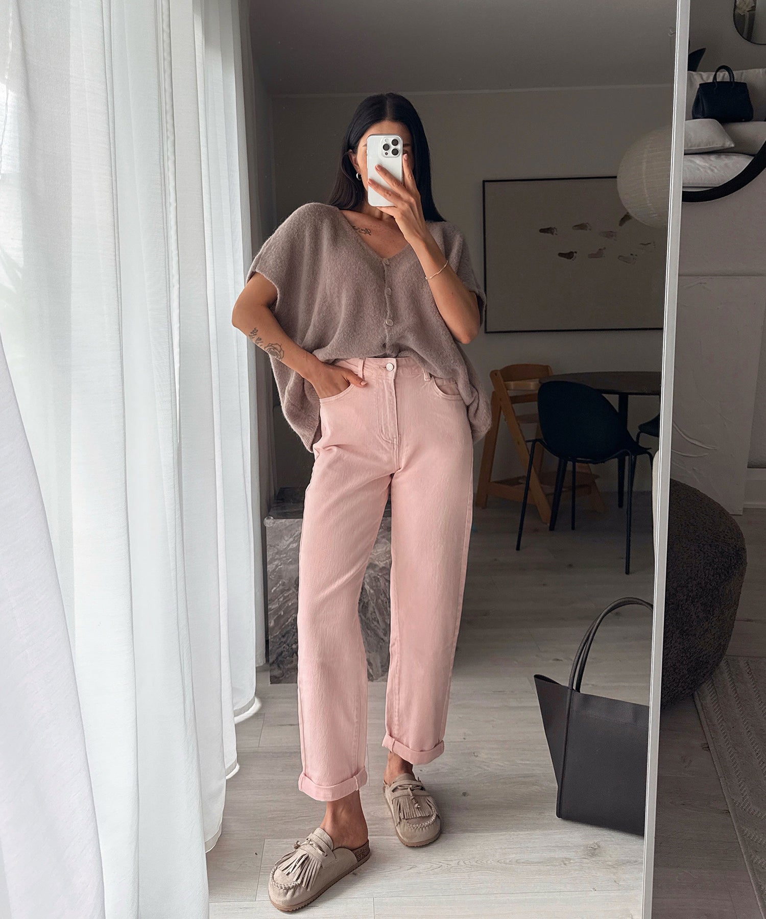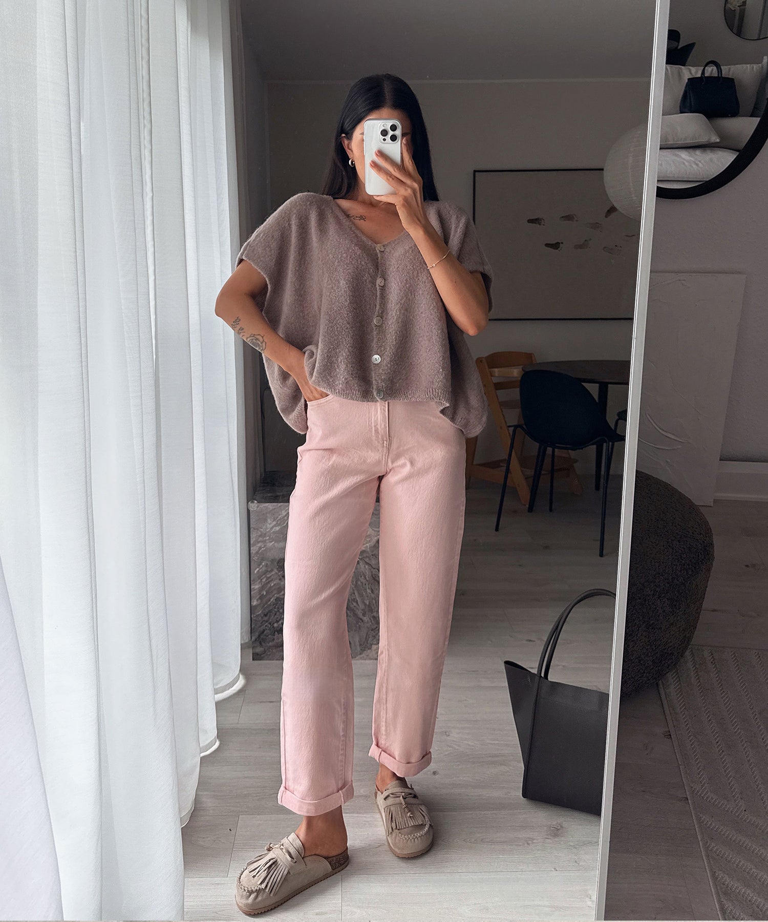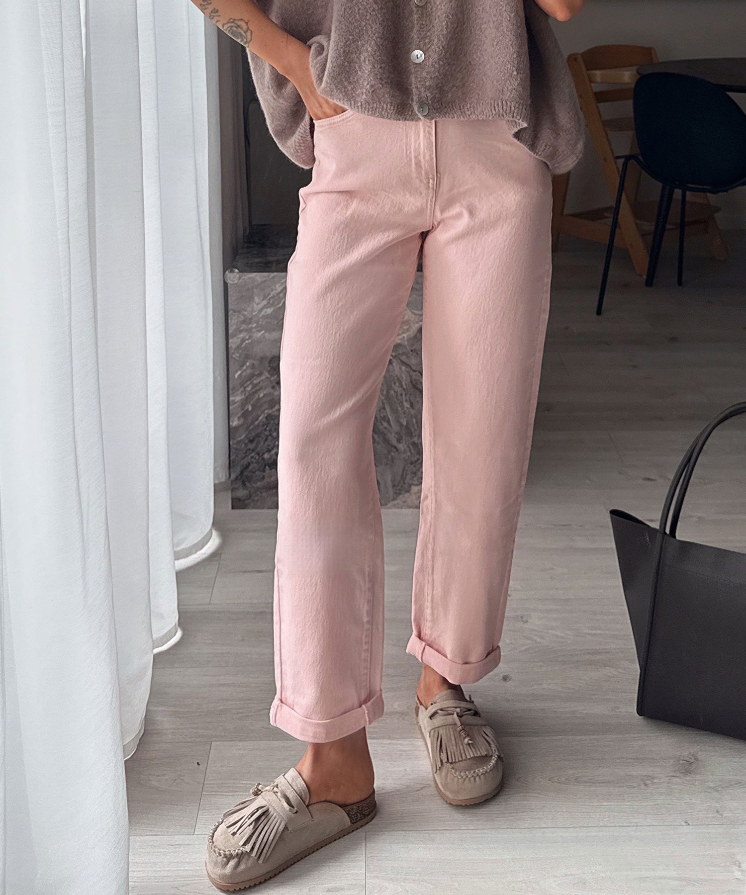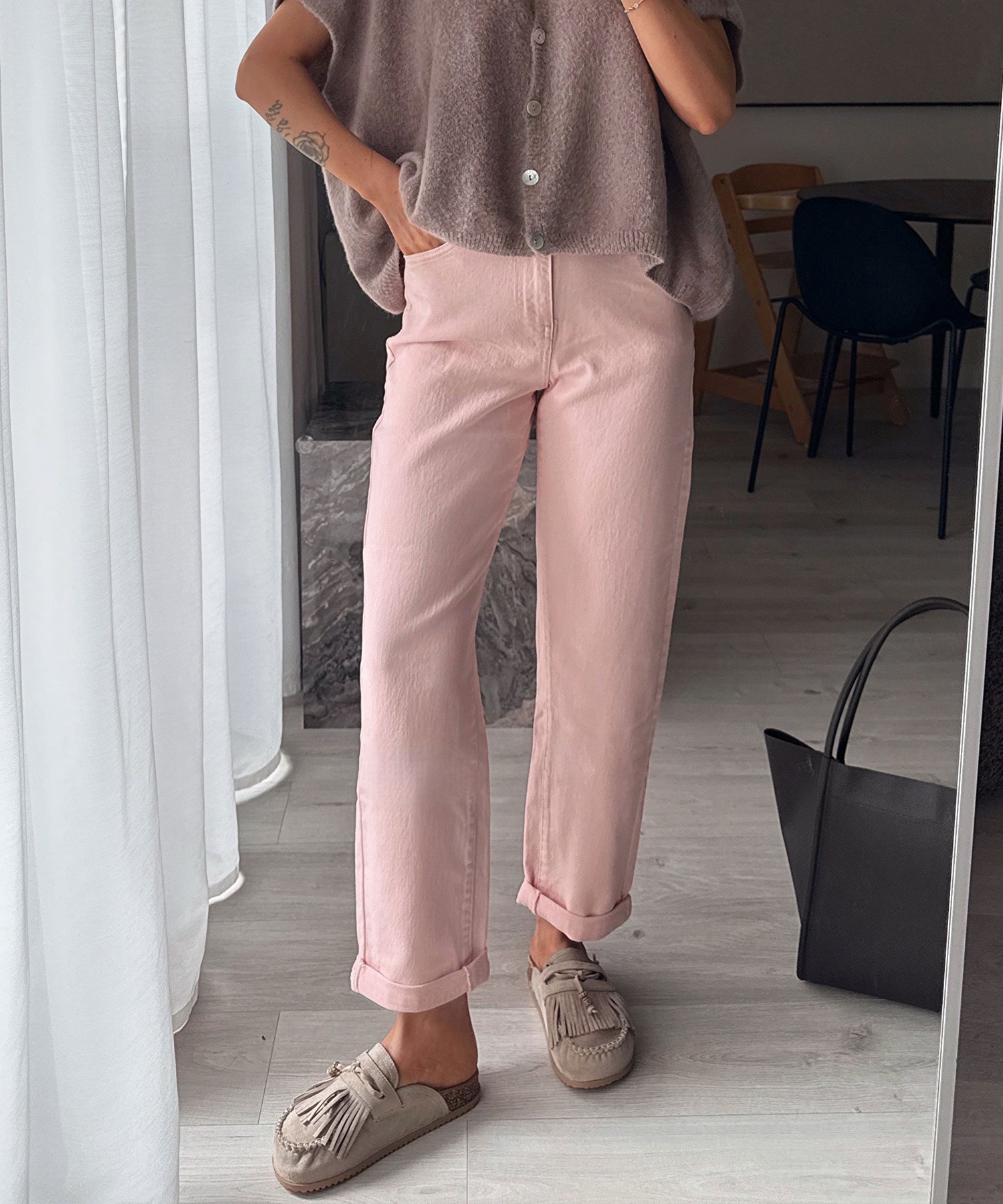 Jeans aus Baumwolle mit Stretch. Fällt normal aus. Model eins ist 1,68m und trägt Größe S. Model zwei ist 1,65m.