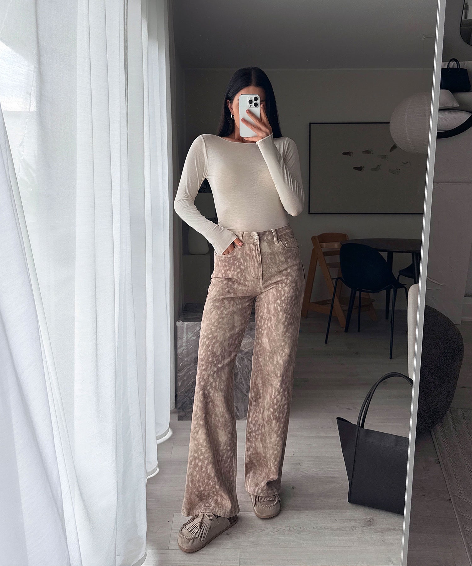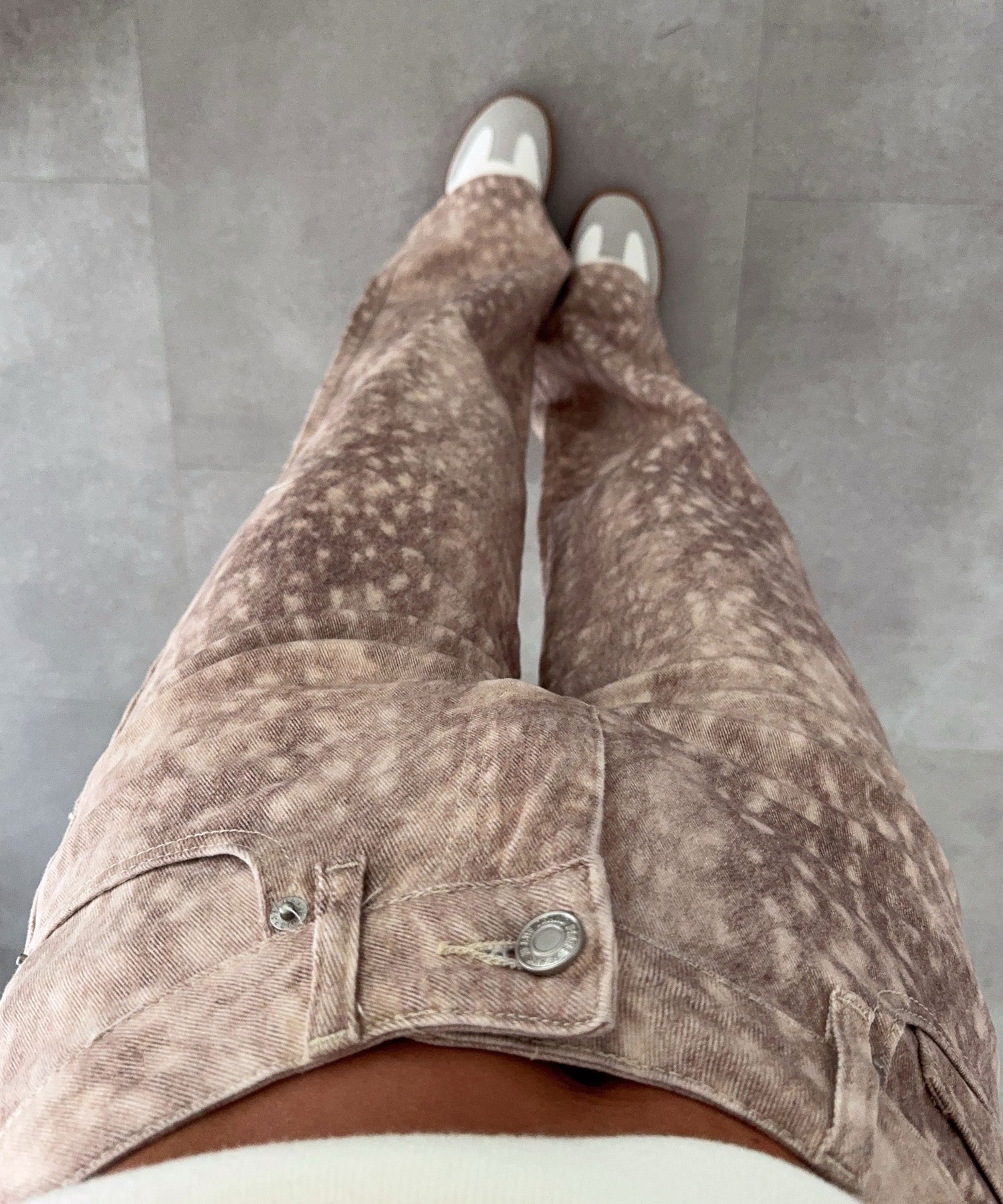 Jeans aus Baumwolle. Enthält Stretch daher super bequem. Fällt normal aus. Model eins ist 1,68m und trägt Größe S.