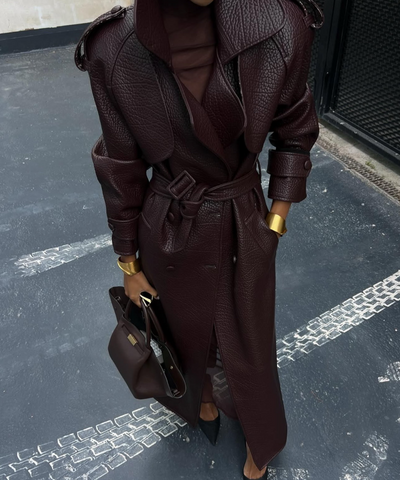 Gefütterte Lederjacke Vida mit Fell Weinrot