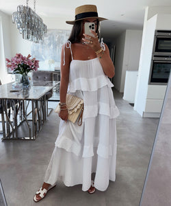 Musselin Kleid aus 100% Baumwolle. Kann oben beliebig gebunden werden. Model ist 1.65m. Passt XS-XXL.