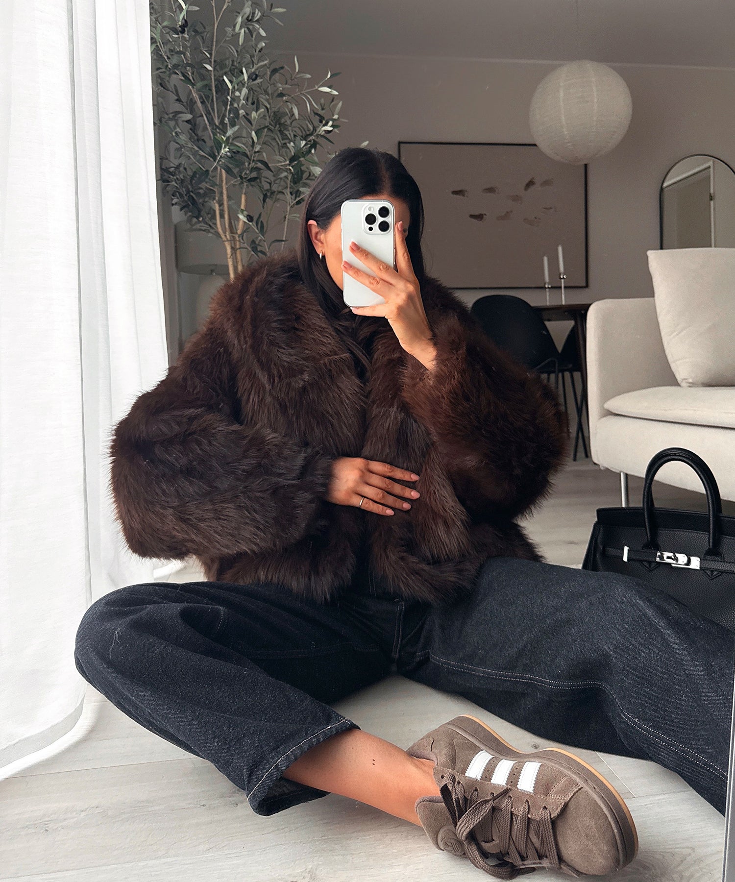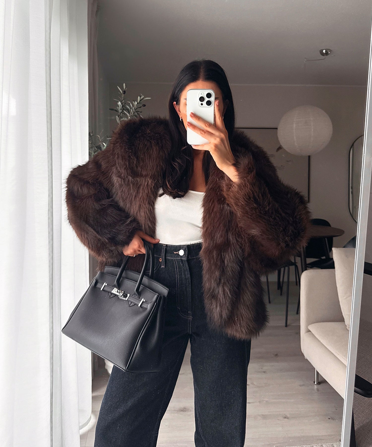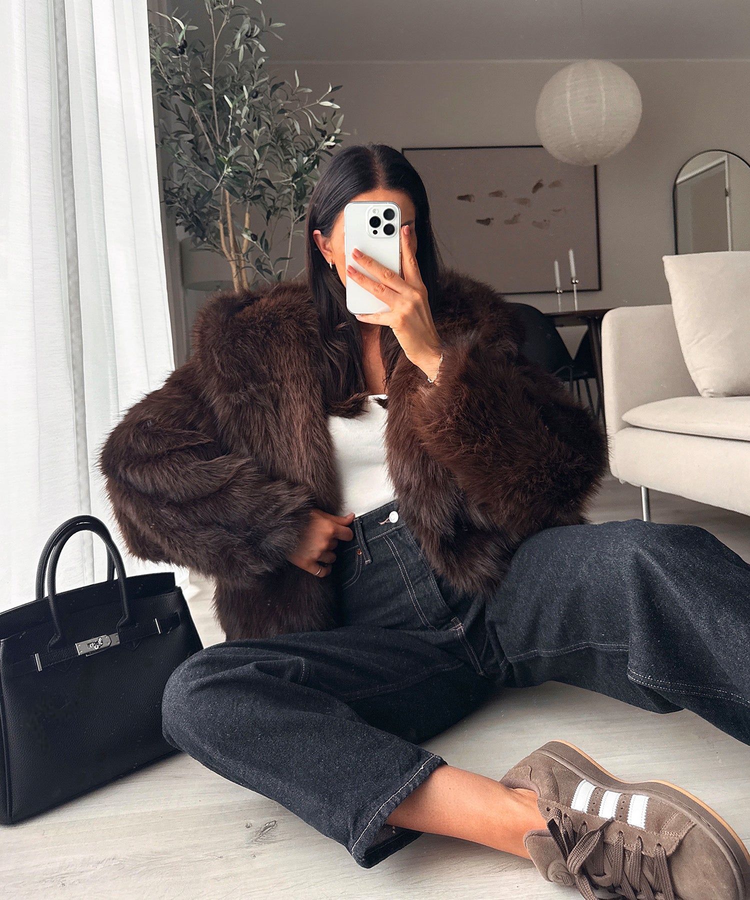 Pelzjacke mit Kapuze Lilly Braun Ladypolitan ♡