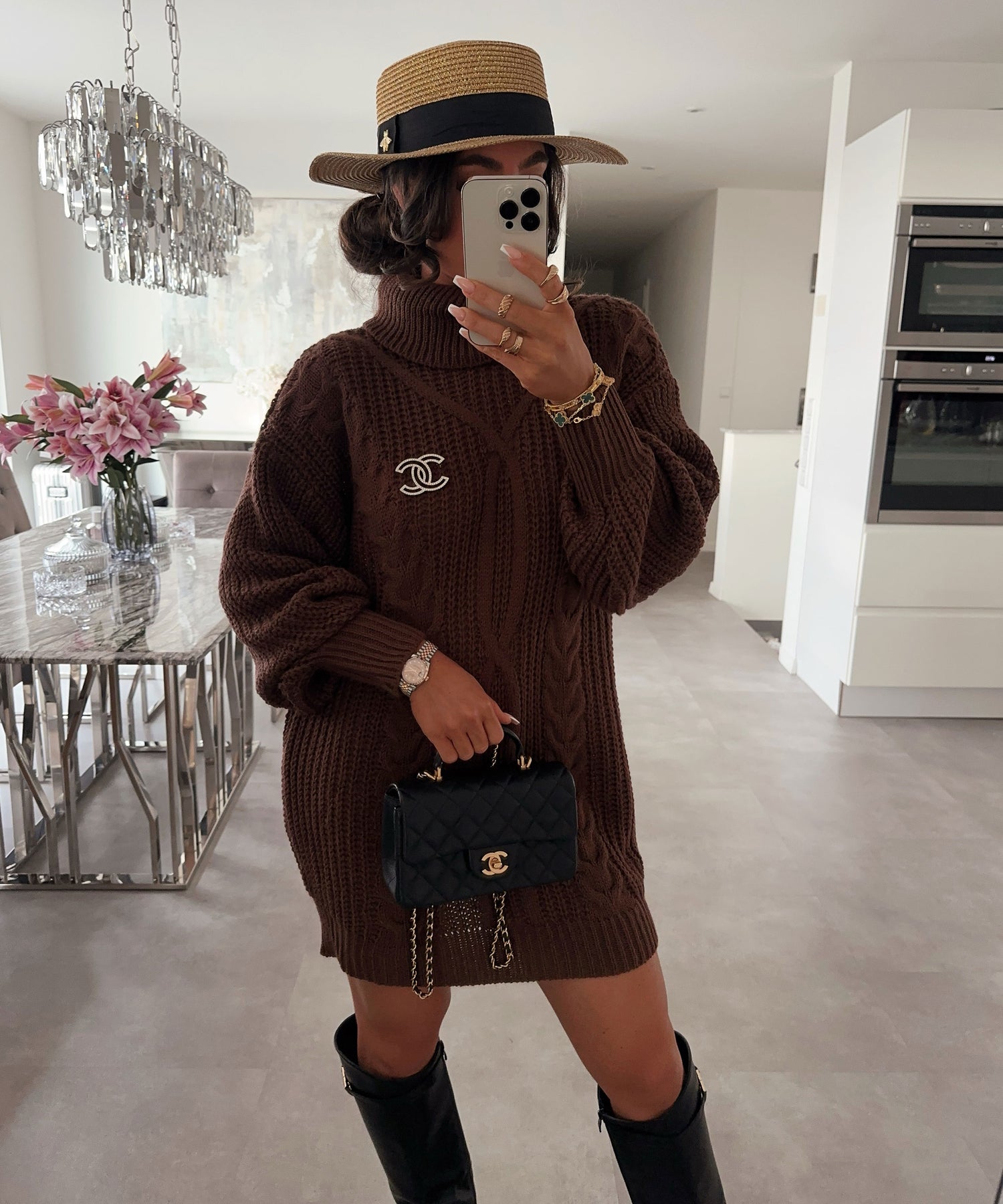 Weiches dehnbares Strickkleid. Passt den Größen XS-L. Model eins ist 1,69m. Model zwei ist 1,65m.