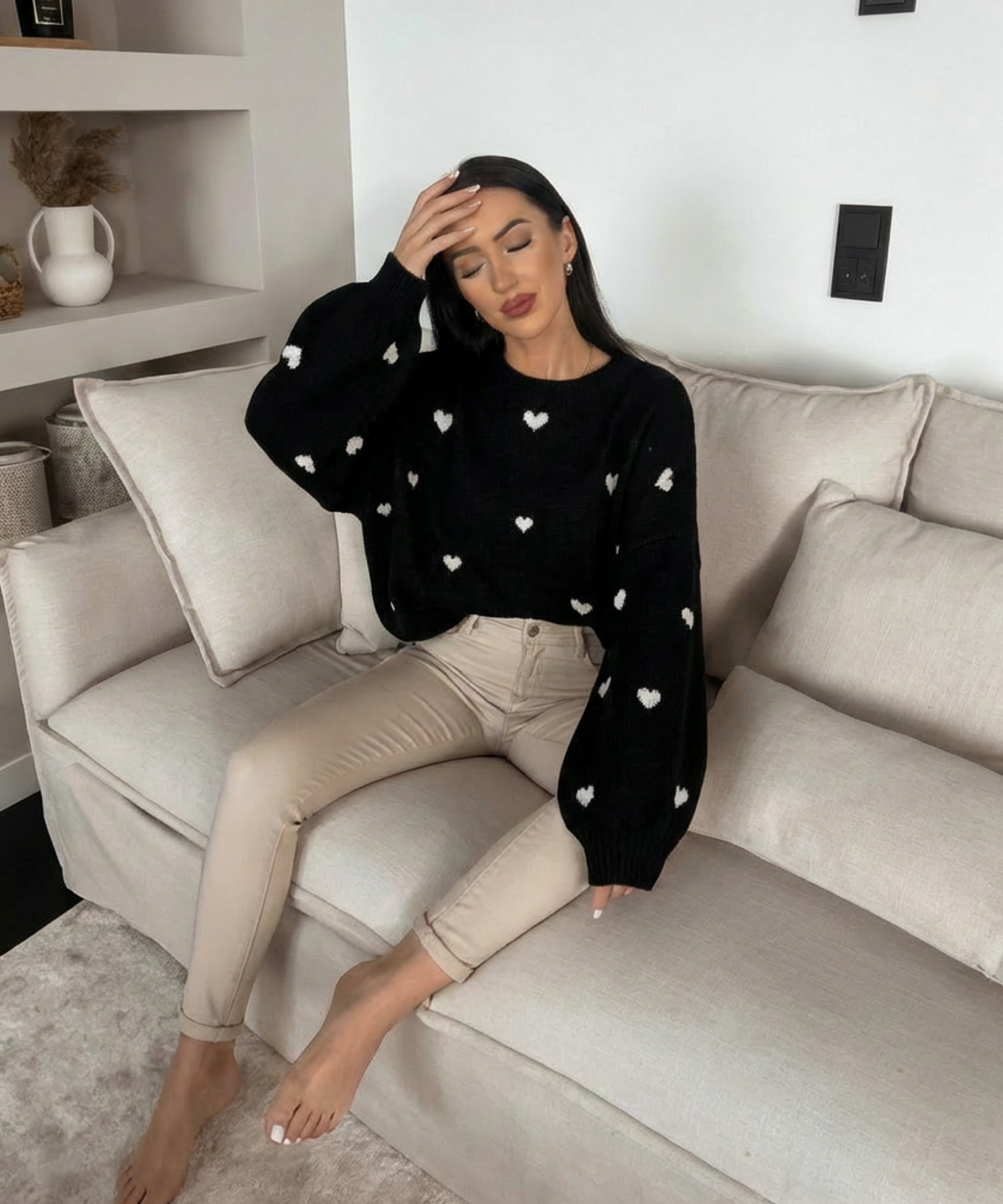 Extrem weicher und sehr kuscheliger Pullover. Passt durch den tollen Schnitt Größe XS-XL. Model ist 1.65m.