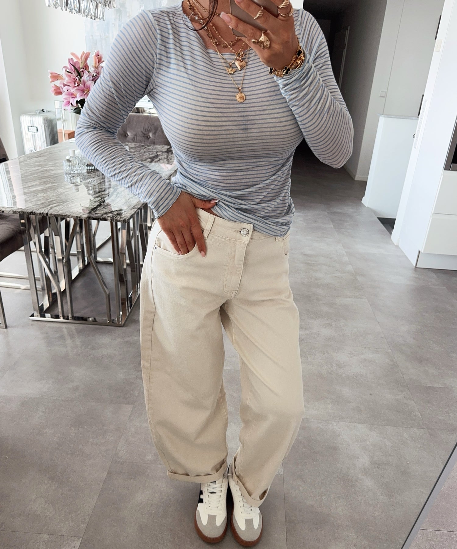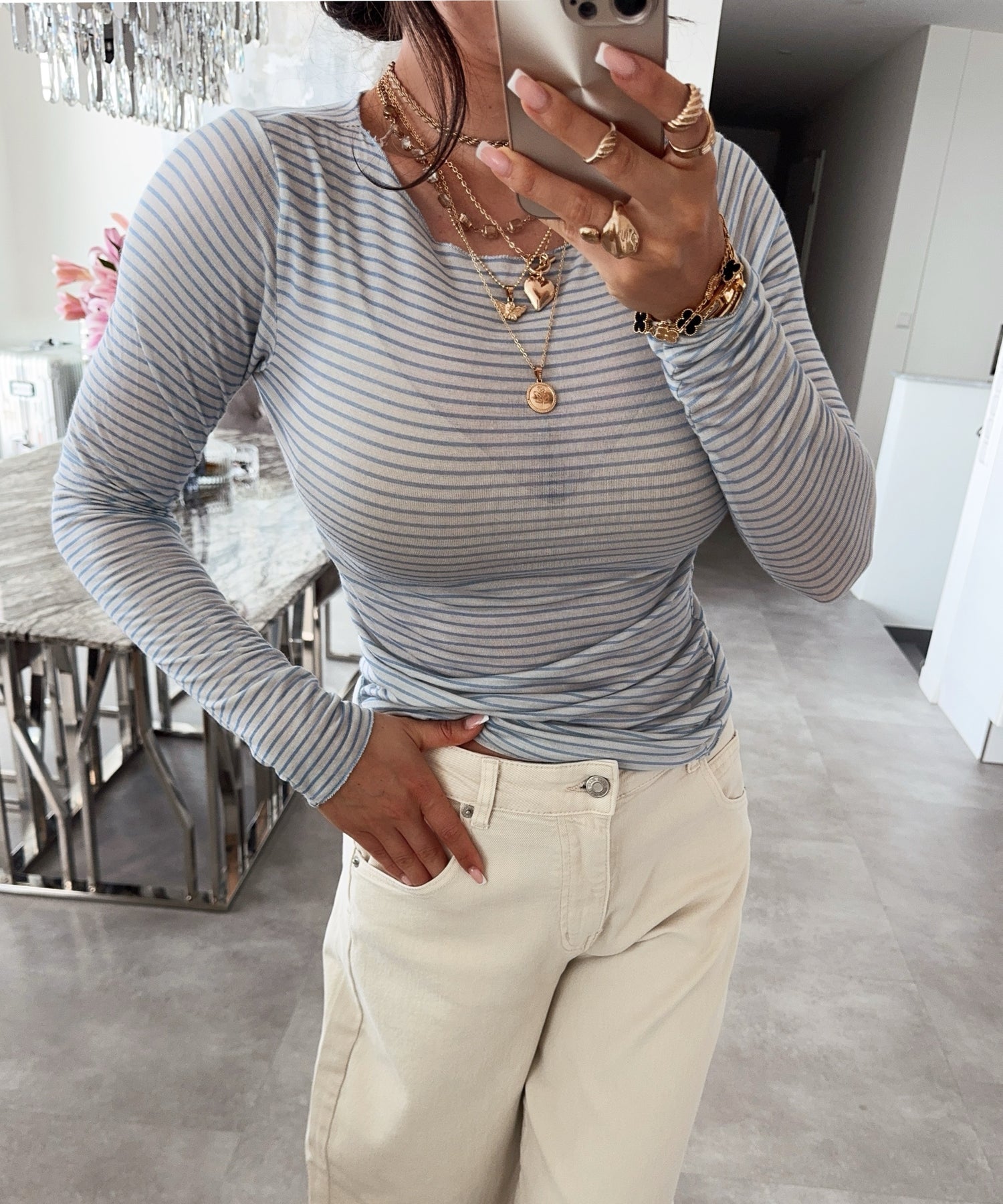 Viskose/Kaschmir Oberteil Leona Streifen Hellblau Ladypolitan ♡