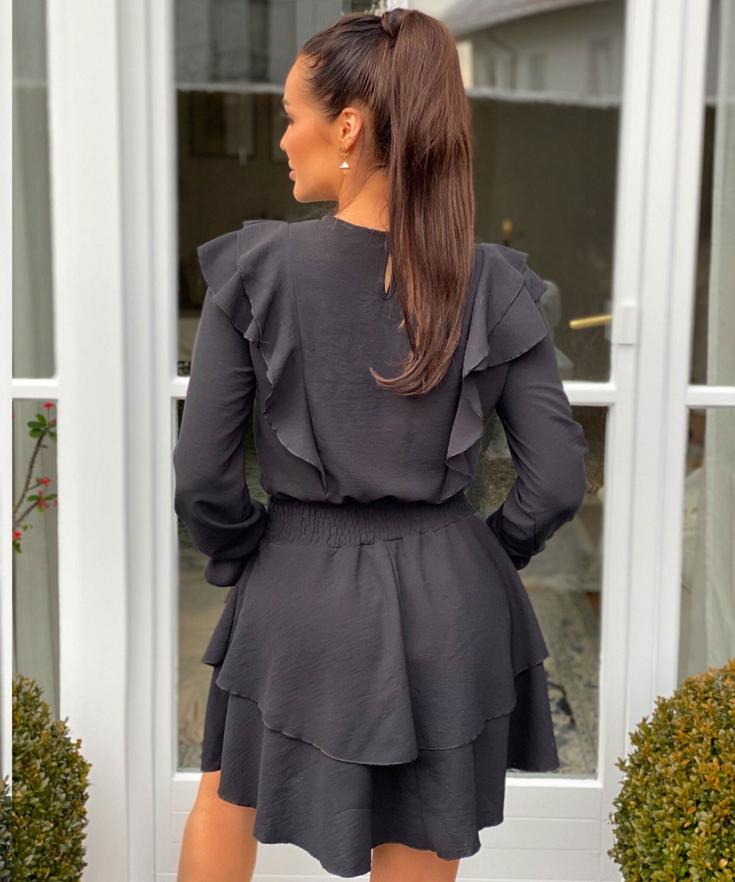 Super schönes und luftiges Kleid mit einem dehnbaren Gummibund. Die Einheitsgröße passt den Größen XS-L. Unser Model ist 1,65m groß.