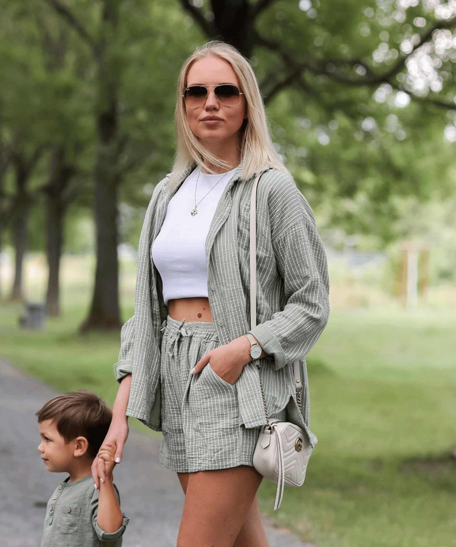 Musselin Set Streifen Aurela Khaki  Ladypolitan ♡