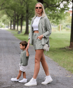 Ein super bequemes Set aus 100% Baumwolle bestehend aus einer normal sitzenden Musselin Bluse (anderer Schnitt als unsere Freya oversize Bluse) und einer sehr bequemen Musselin Shorts mit dehnbarem Gummibund. Perfektes Set für den Sommer.