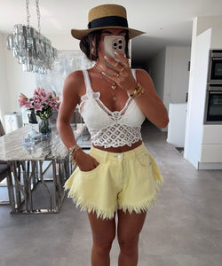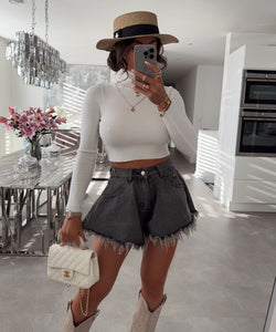 Fällt normal aus. Wenn ihr eine Zwischengröße habt wählt die größere Größe. Hat hinten am Bund einen eingenähten Gummibund. Shorts aus Baumwolle. Model ist 1,65m groß und trägt Größe S.