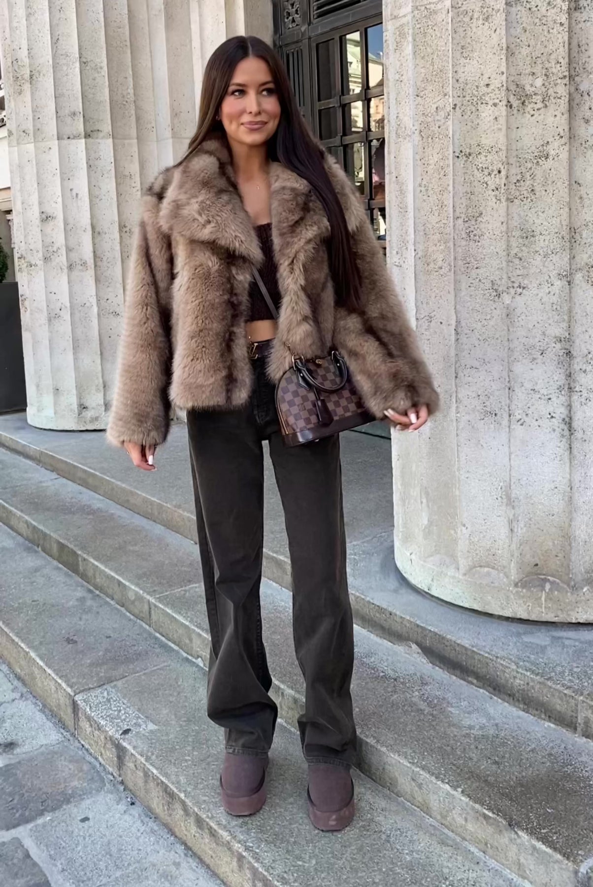 Fällt normal aus. SM und ML haben keinen großen Unterschied. Model eins ist 1.69m und trägt Größe SM. Super weiche Kunstpelzjacke mit Handtaschen und Druckknöpfen.