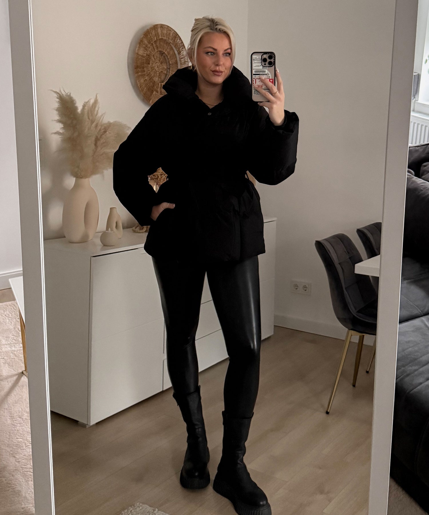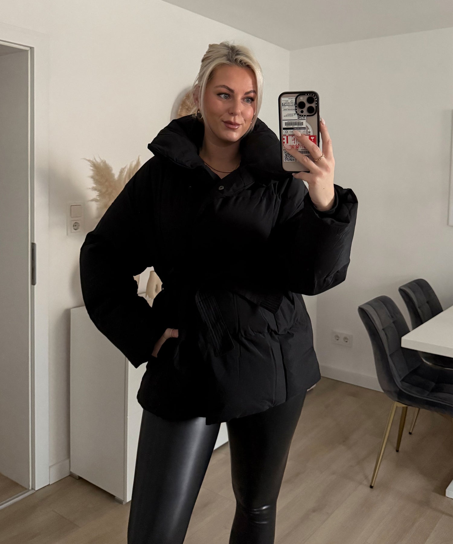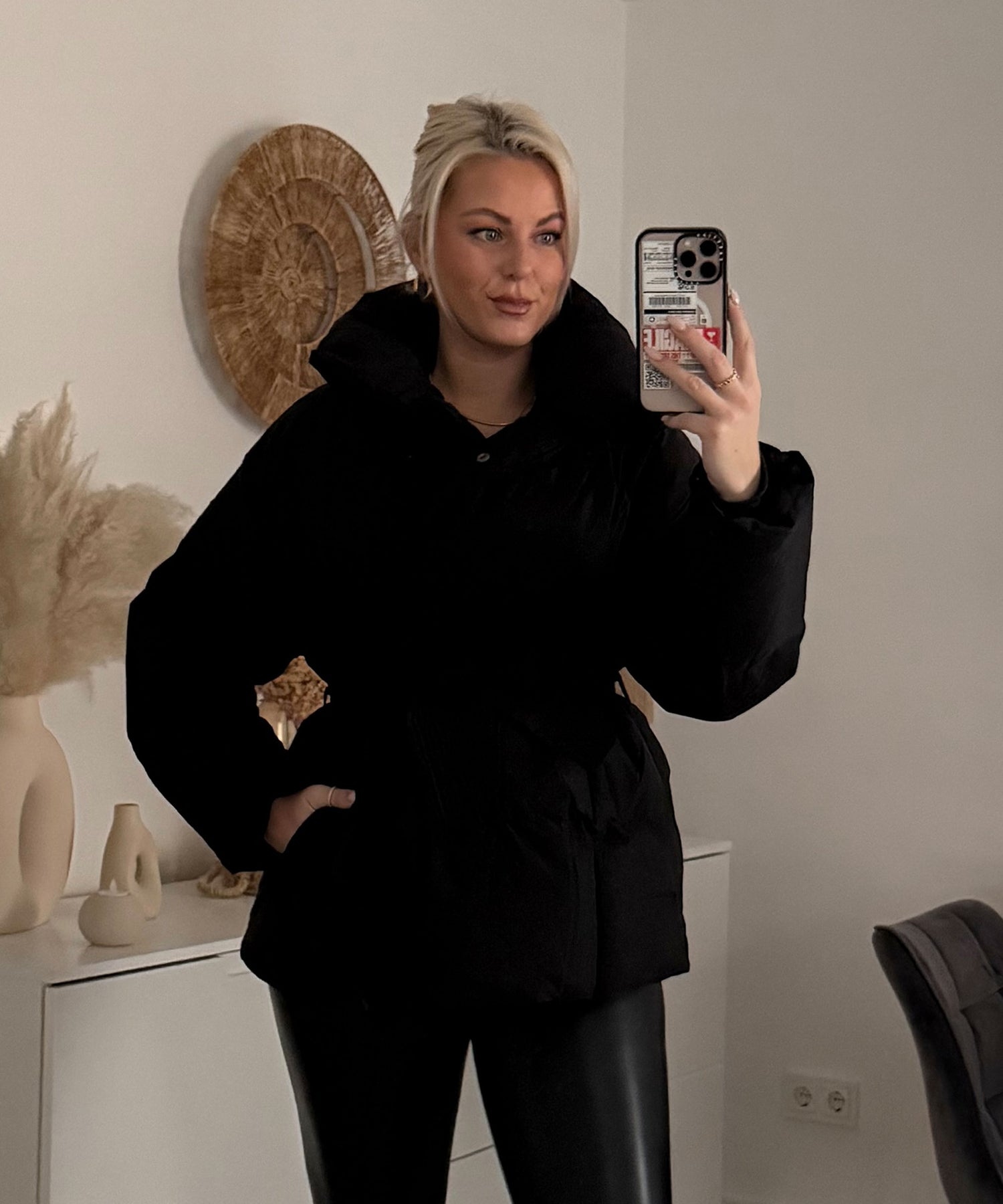 Jacke hält sehr warm. Model eins ist 1.69m und trägt. Größe S/M. Model zwei ist 1.65m und trägt Größe S/M. Da die Jacke durch den Gürtel tailliert wird haben Größe SM und ML keinen großen Unterschied. Die Jacke steht kleinen als auch großen Frauen sehr gut.