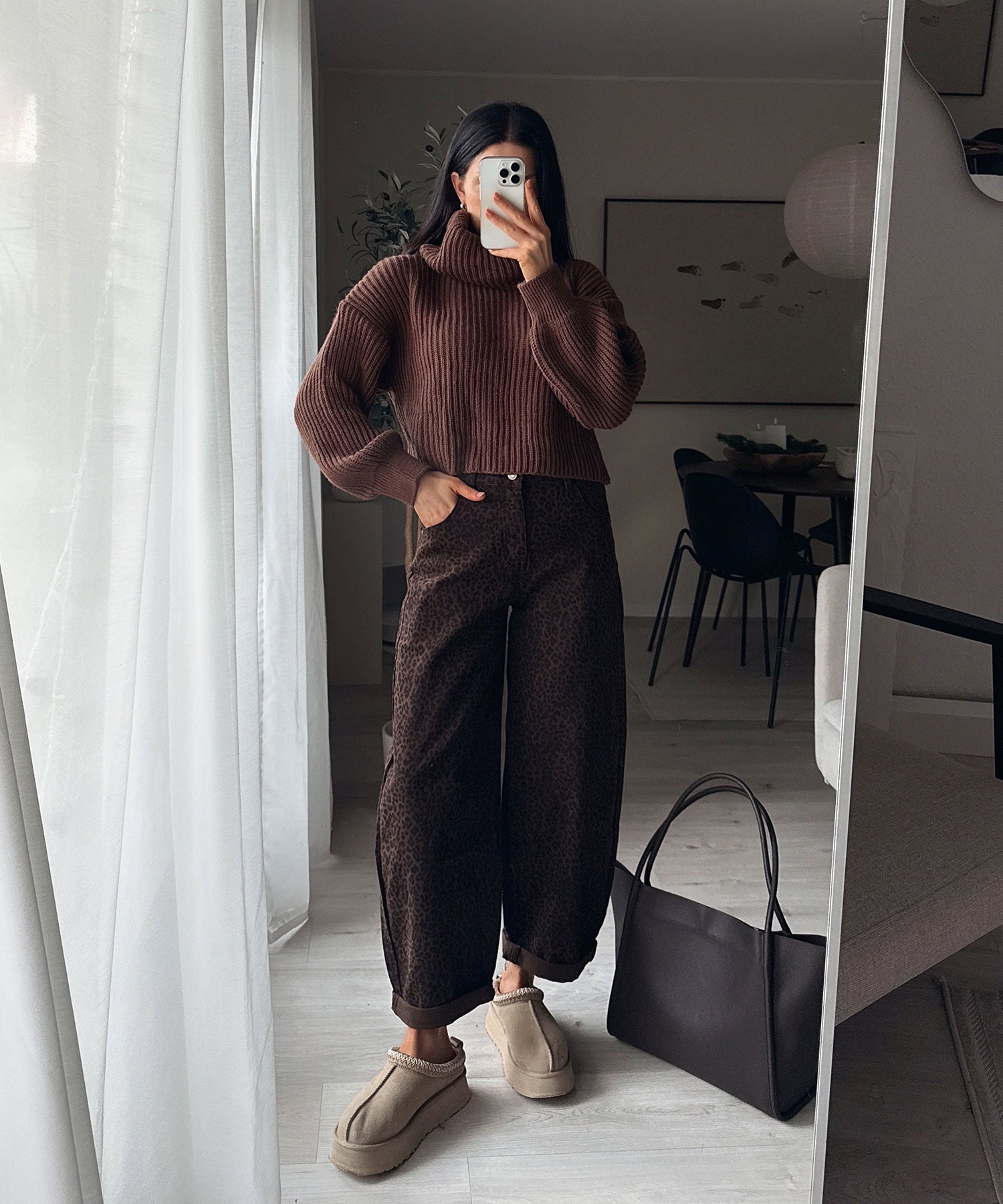 Fällt normal aus. Enthält viel Stretch und ist daher super bequem. Model ist 1,68m groß und trägt Größe S.