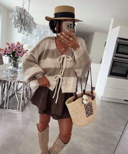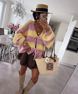 Cardigan Schleife Fia Streifen Rosa Gelb
