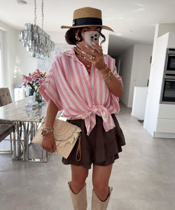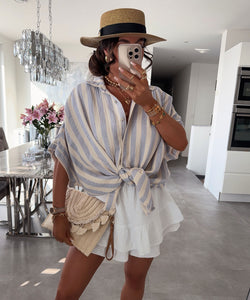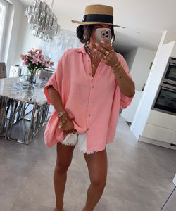 Super schönes oversize Musselin Kurzarmhemd aus 100% Baumwolle. Model ist 1,65m groß.