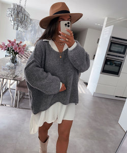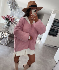 Super weicher und kuscheliger Pullover mit V-Ausschnitt. Model ist 1,65m groß.
