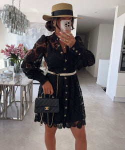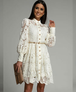 Hochwertiges spitzen Kleid mit wunderschönen Details. Kommt mit dem Gürtel. Fällt normal aus. Model ist 1,65m und trägt Größe S.