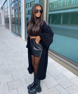 Angenehmer Stoff. Einheitsgröße passt XS-XL. Model ist 1.65m groß. Länge ca. 1.15m. Tolles Neonorange kann die Kamera leider nicht richtig auffangen.