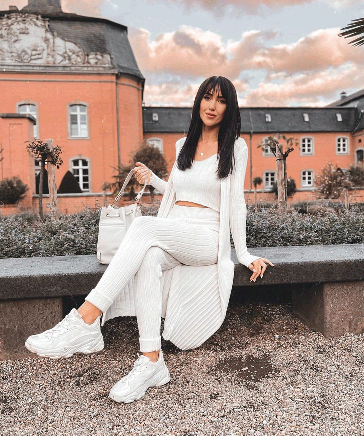 Super weicher und dehnbarer Stoff. Einheitsgröße passt Größe XS-L. Model eins ist 1.69m groß. Model zwei ist 1.65m groß. Hose AUCH perfekt für kleinere Mädels, dann einfach unten am Knöchel einklappen.