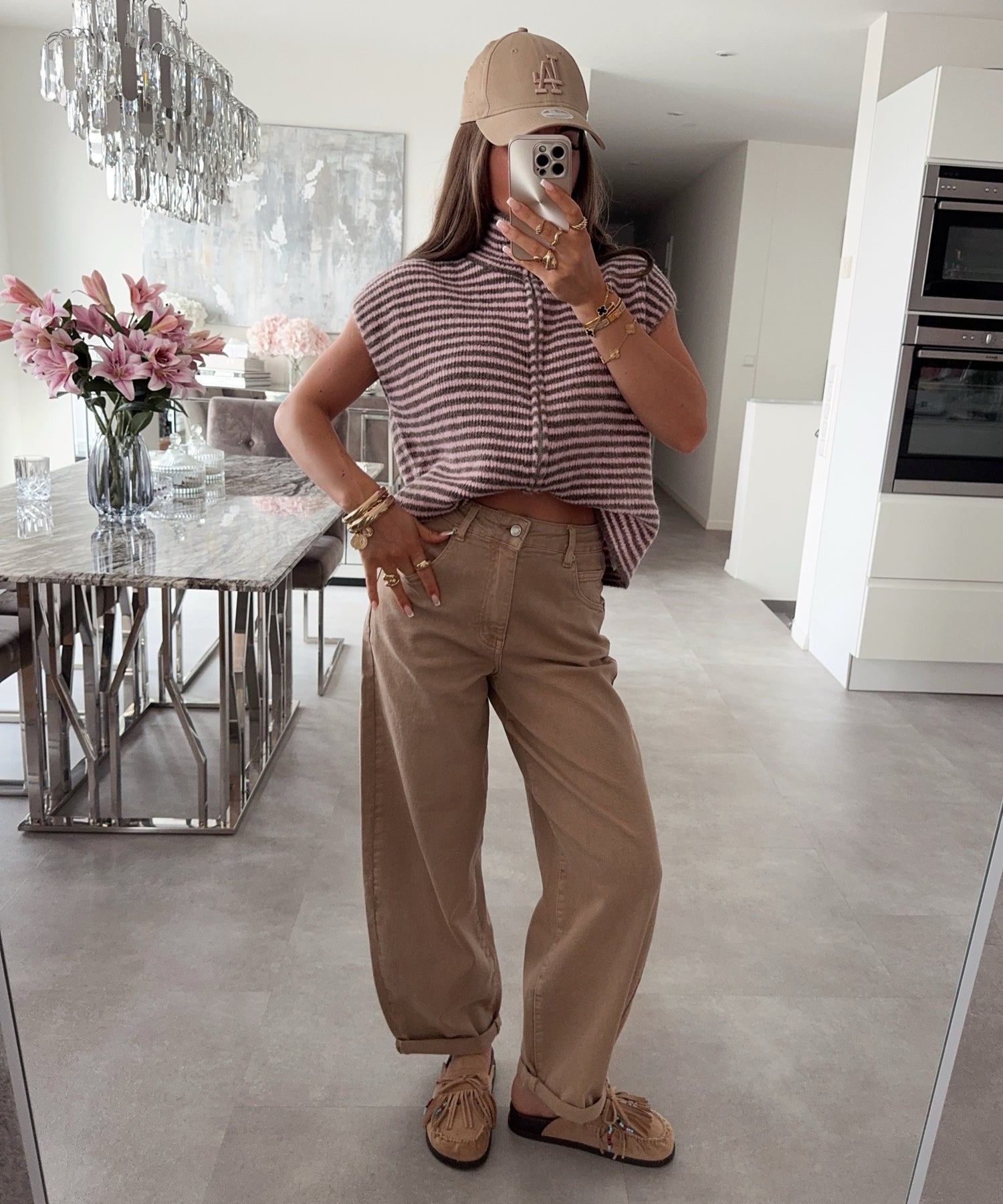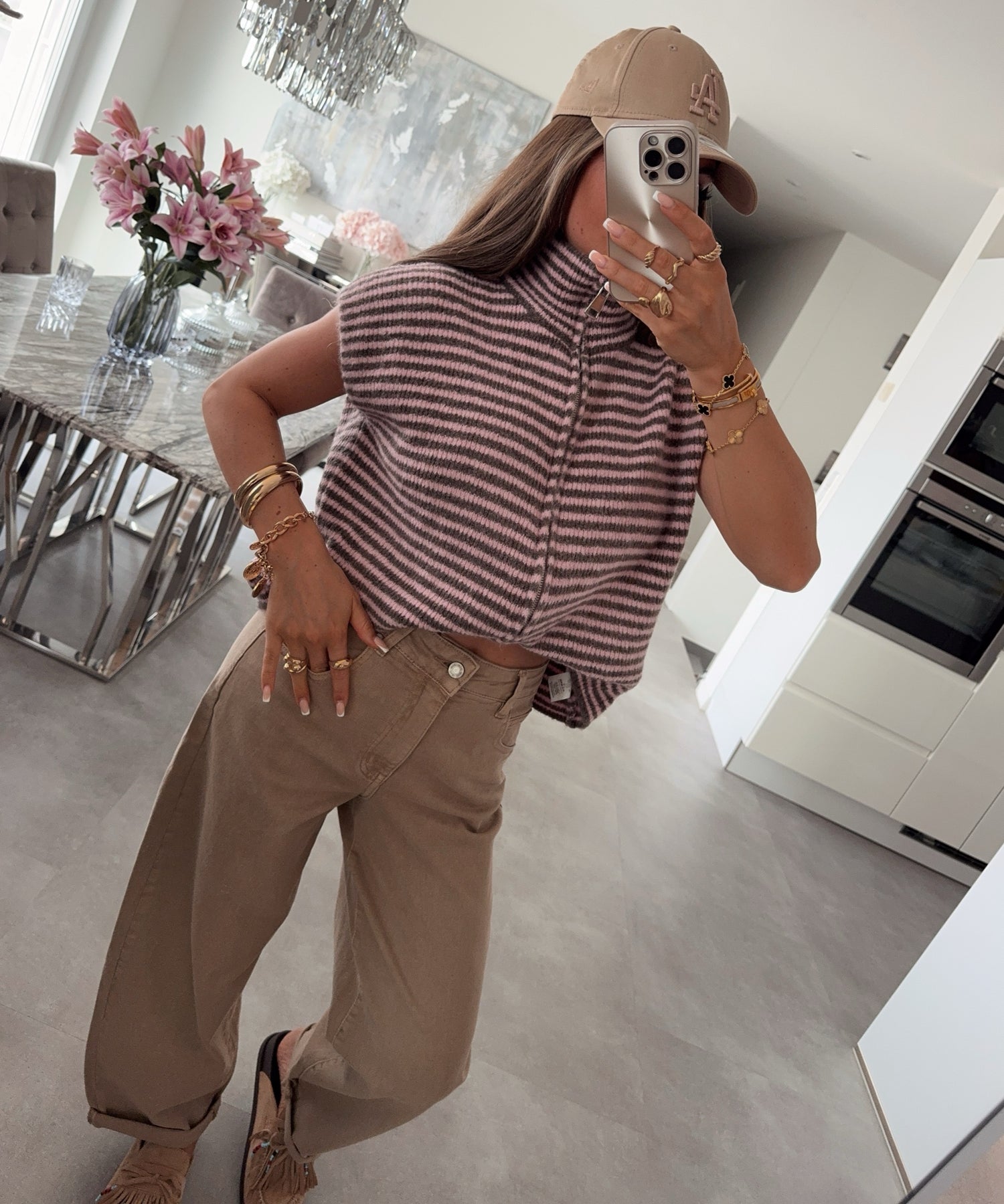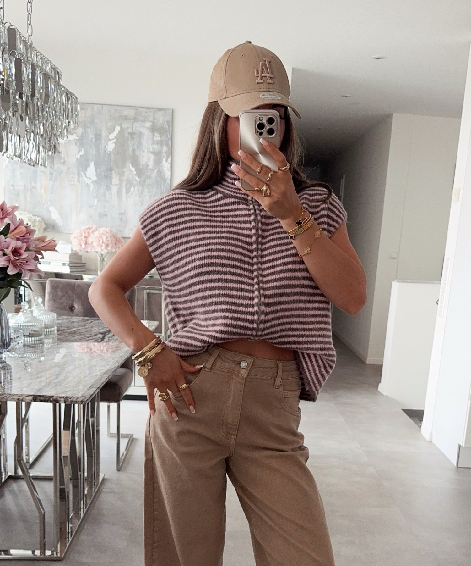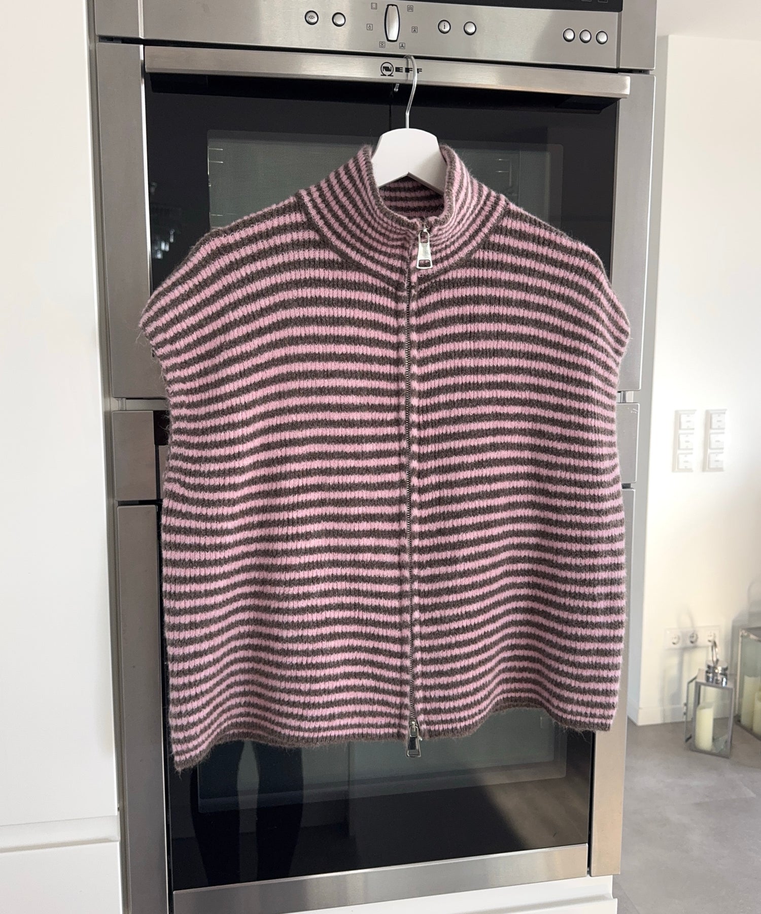 Kurzarm Strickjacke Vania Streifen Braun Rosa