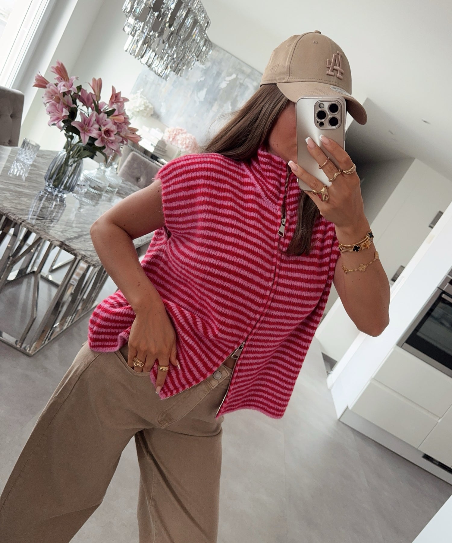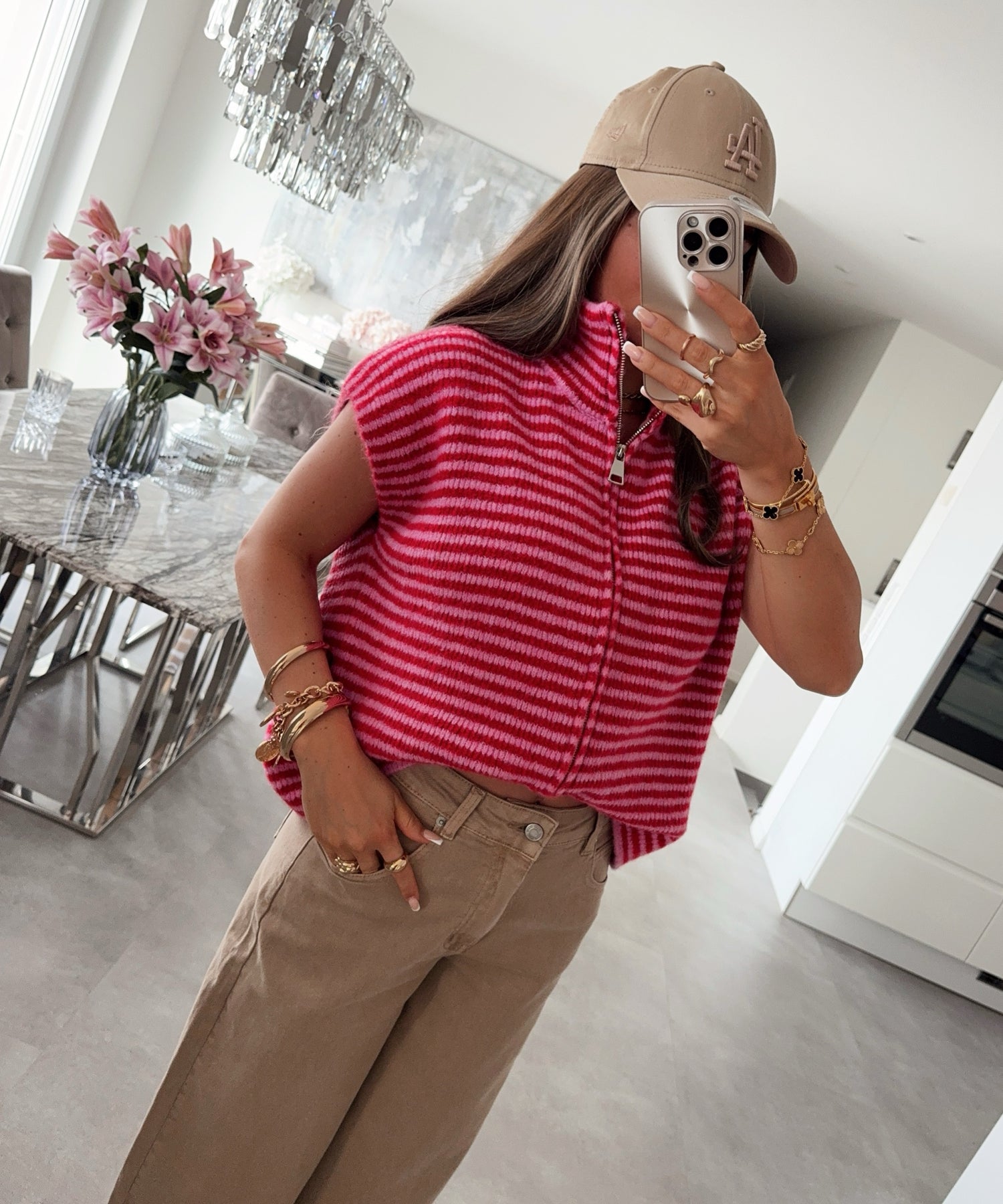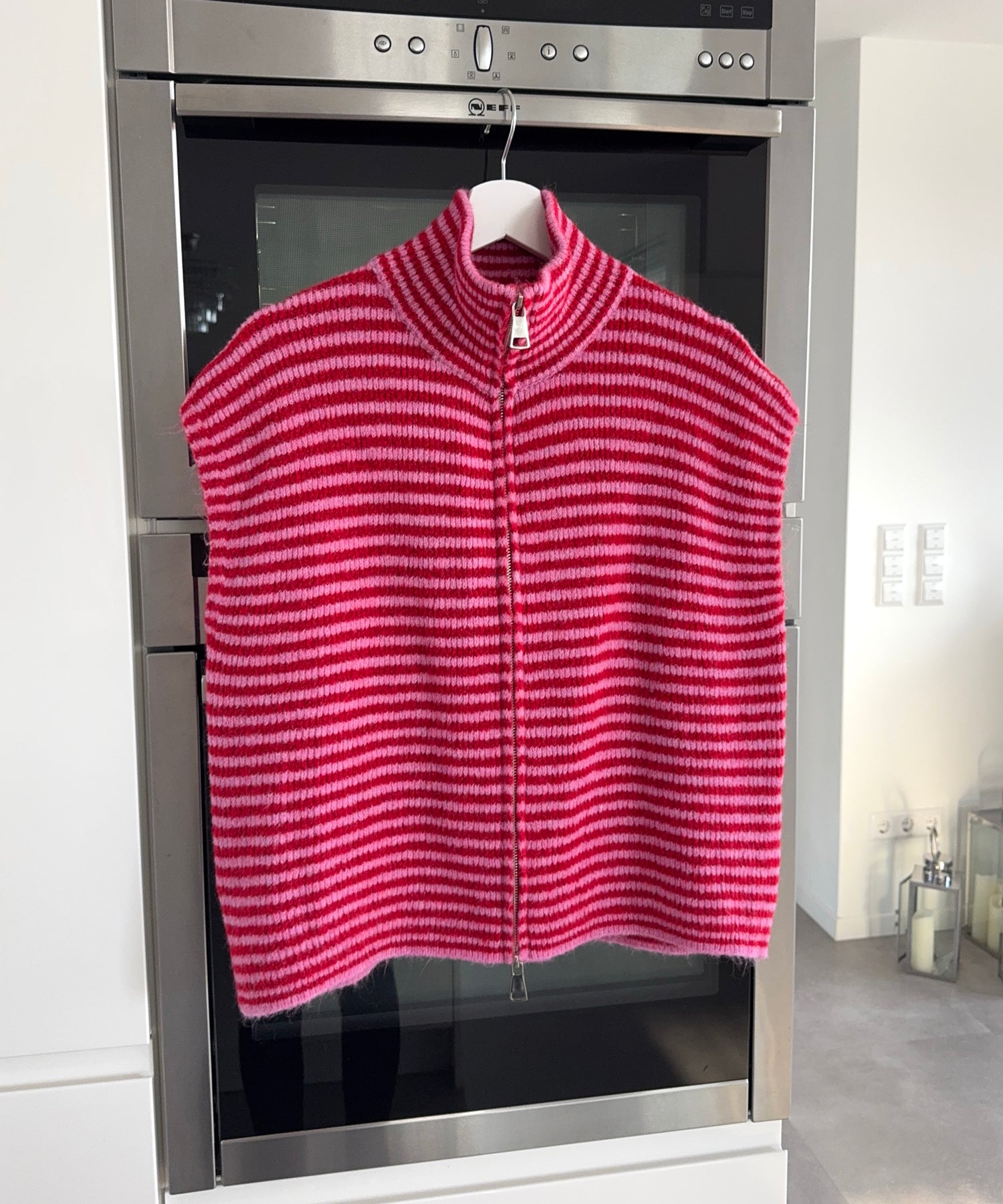 Kurzarm Strickjacke Vania Streifen Rot Pink