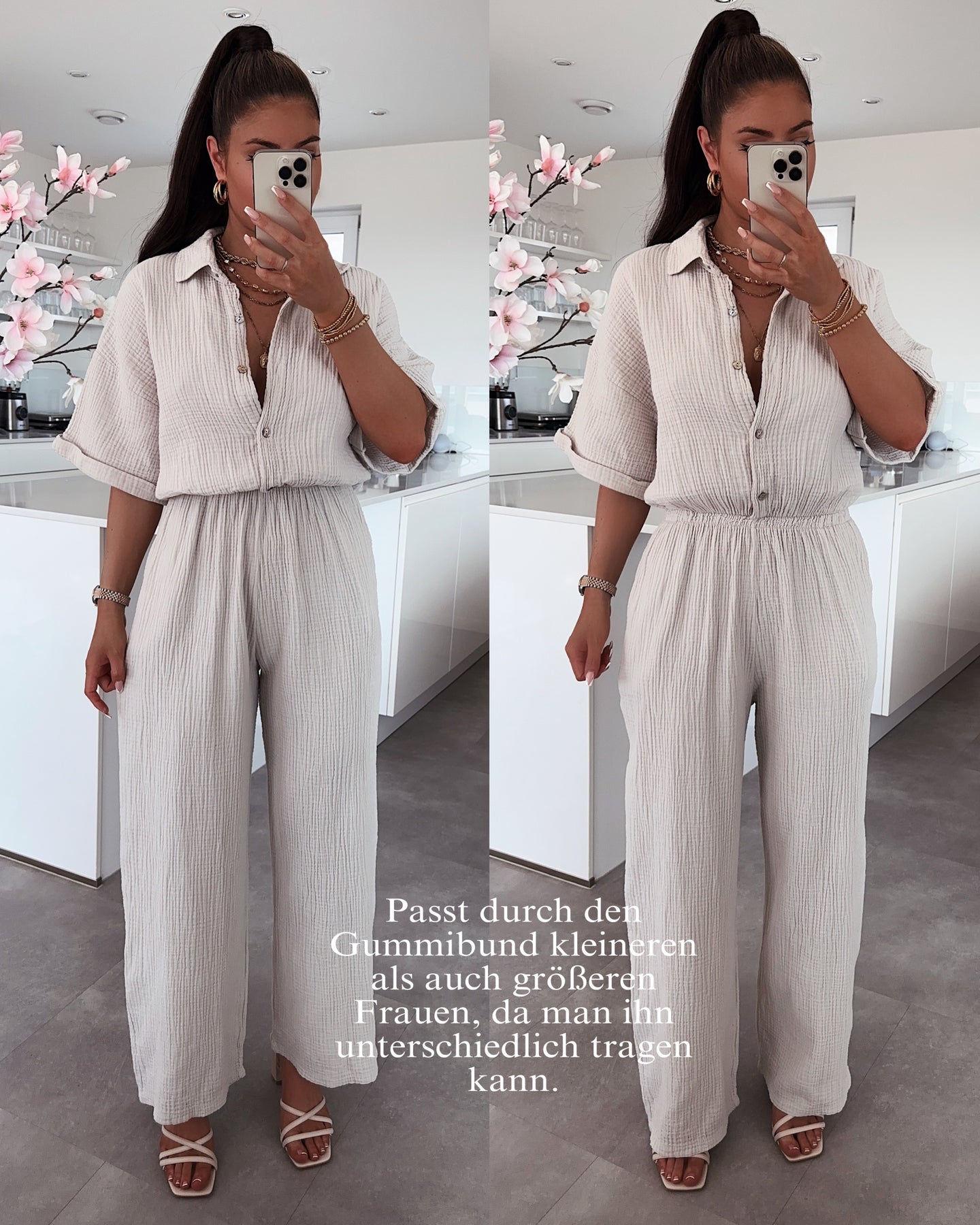 Model eins ist 1.65m groß. Model zwei ist 1.69m groß.