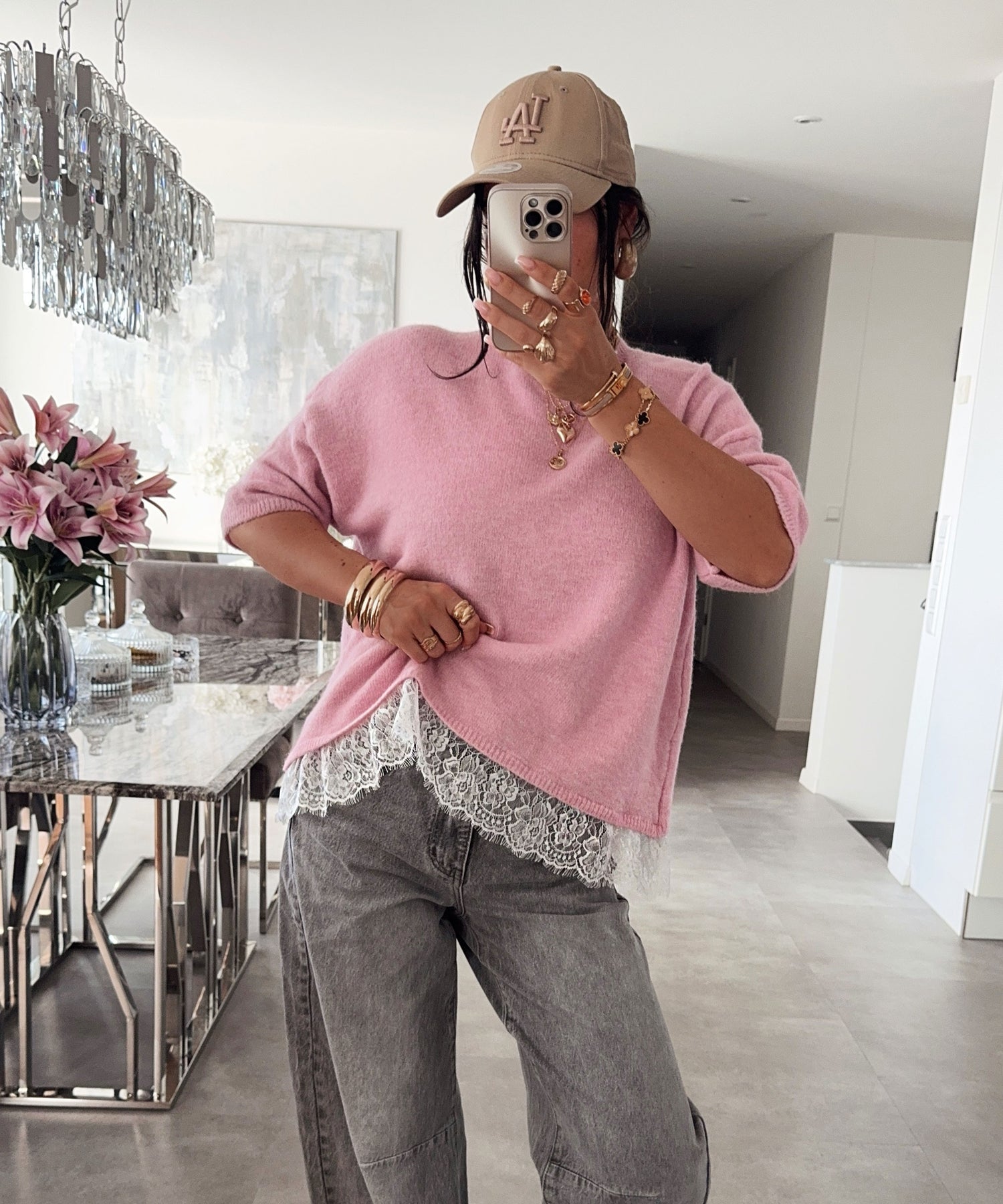 Oversize T-Shirt Midda Spitze Rosa