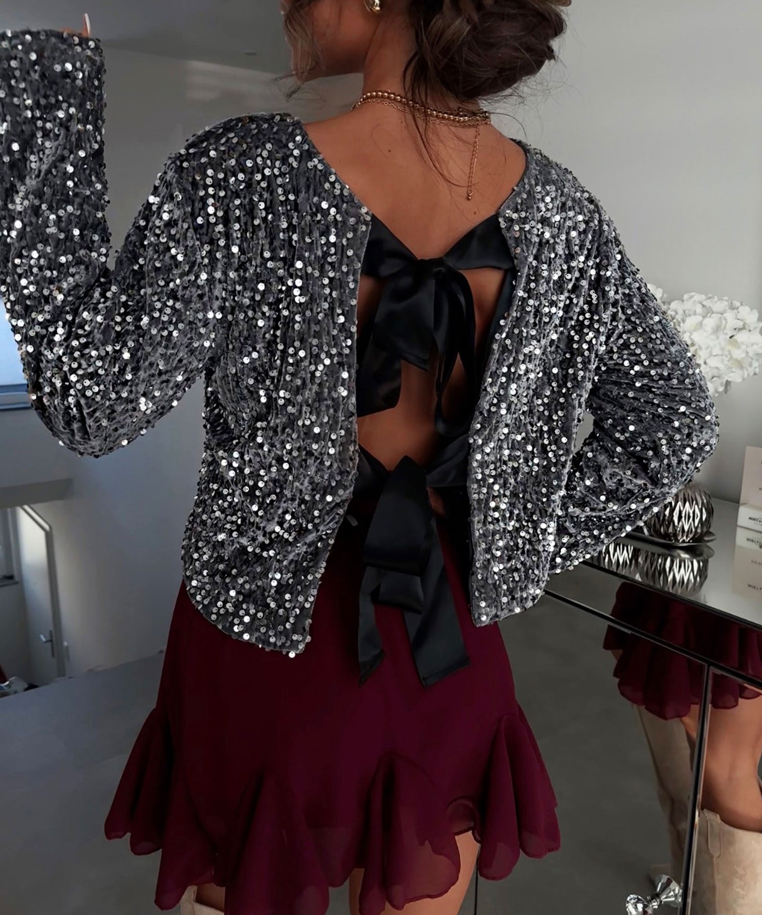 Pailletten Oberteil Kristy Grau  Ladypolitan ♡