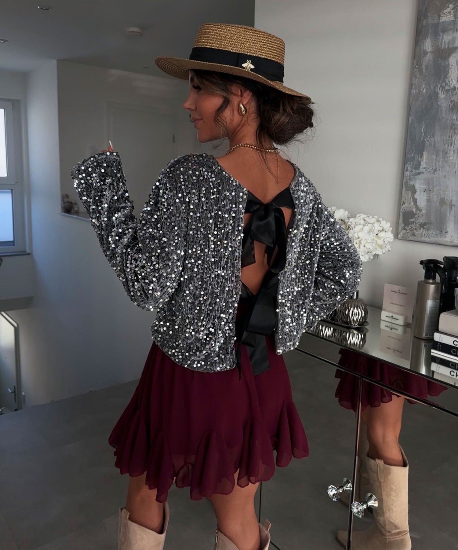 Pailletten Oberteil Kristy Grau