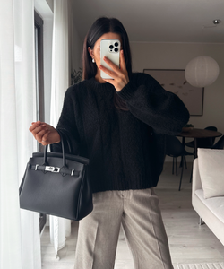 Sehr weicher Pullover. Dehnbarer Stoff passt daher XS-XL. Model ist 1,65m groß.