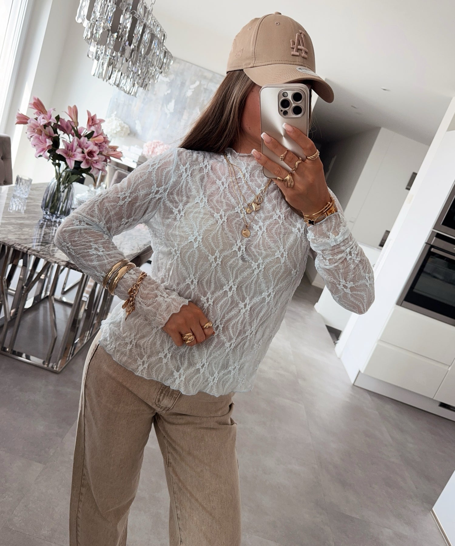 Spitzen Oberteil Zaera Hellblau