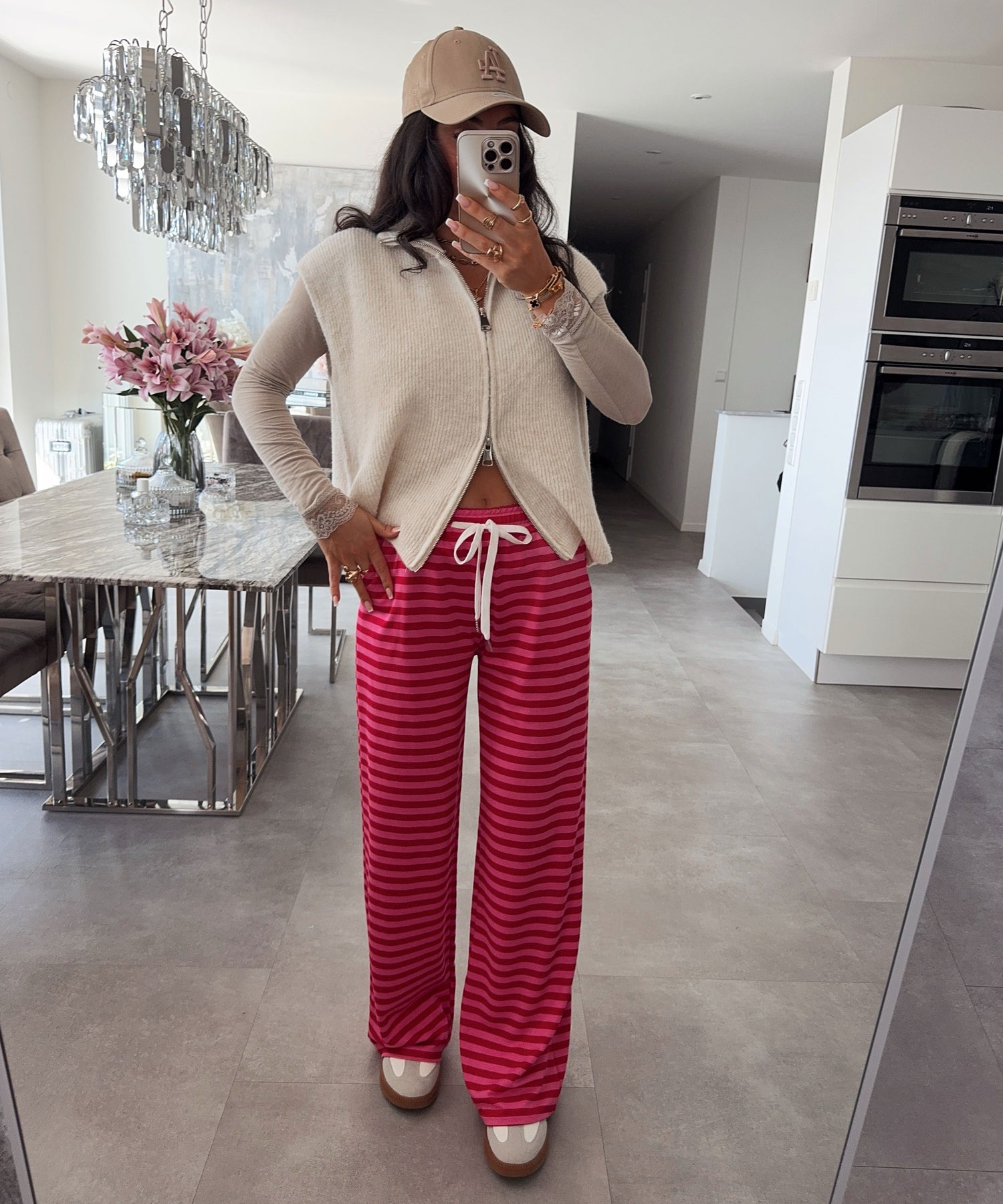 Dehnbare Viskose Hose mit verstellbarem Gummibund. Passt XS-L. Model ist 1,65m groß.