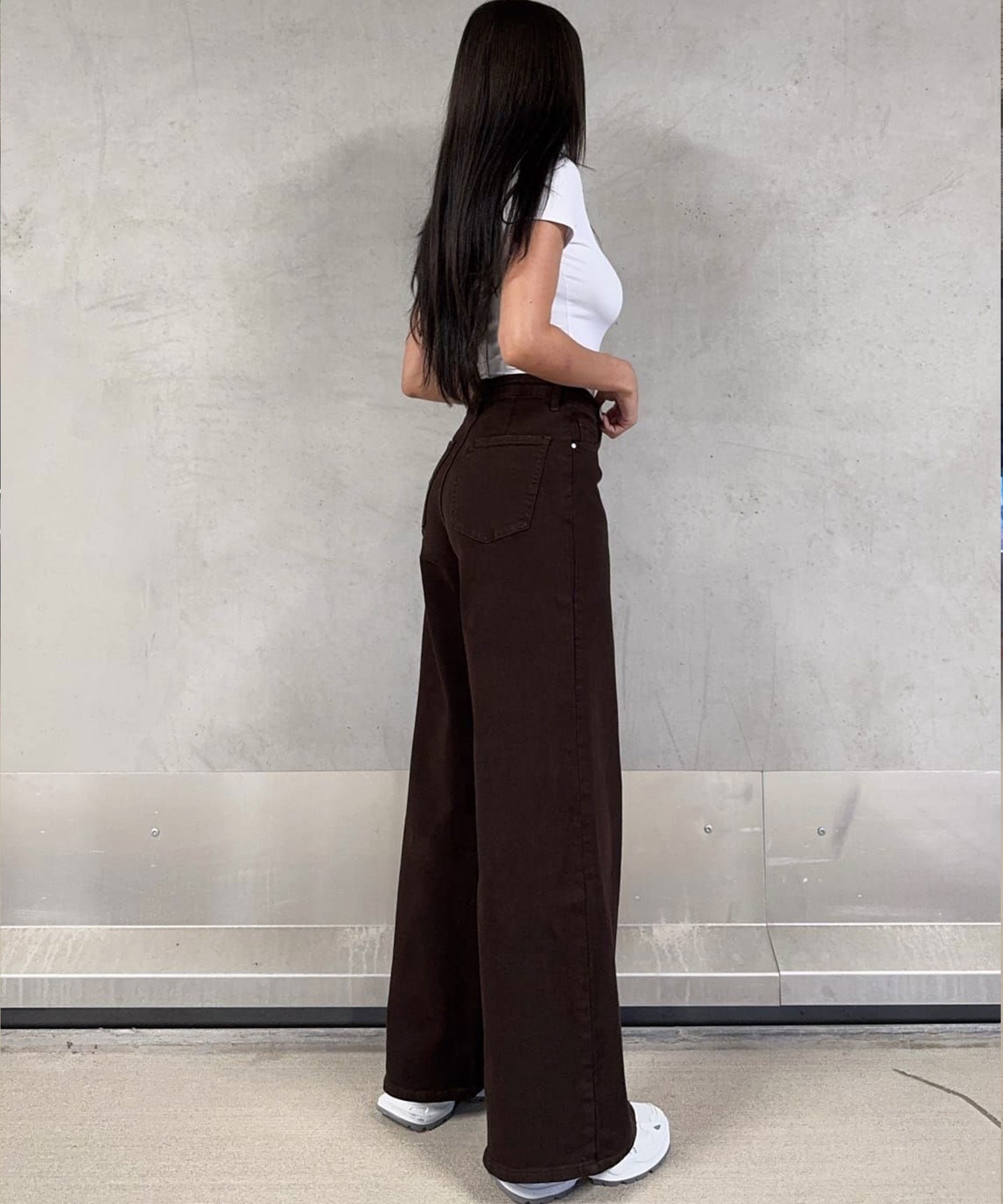Stretch Wide Leg Jeans Tinea Braun Ladypolitan ♡