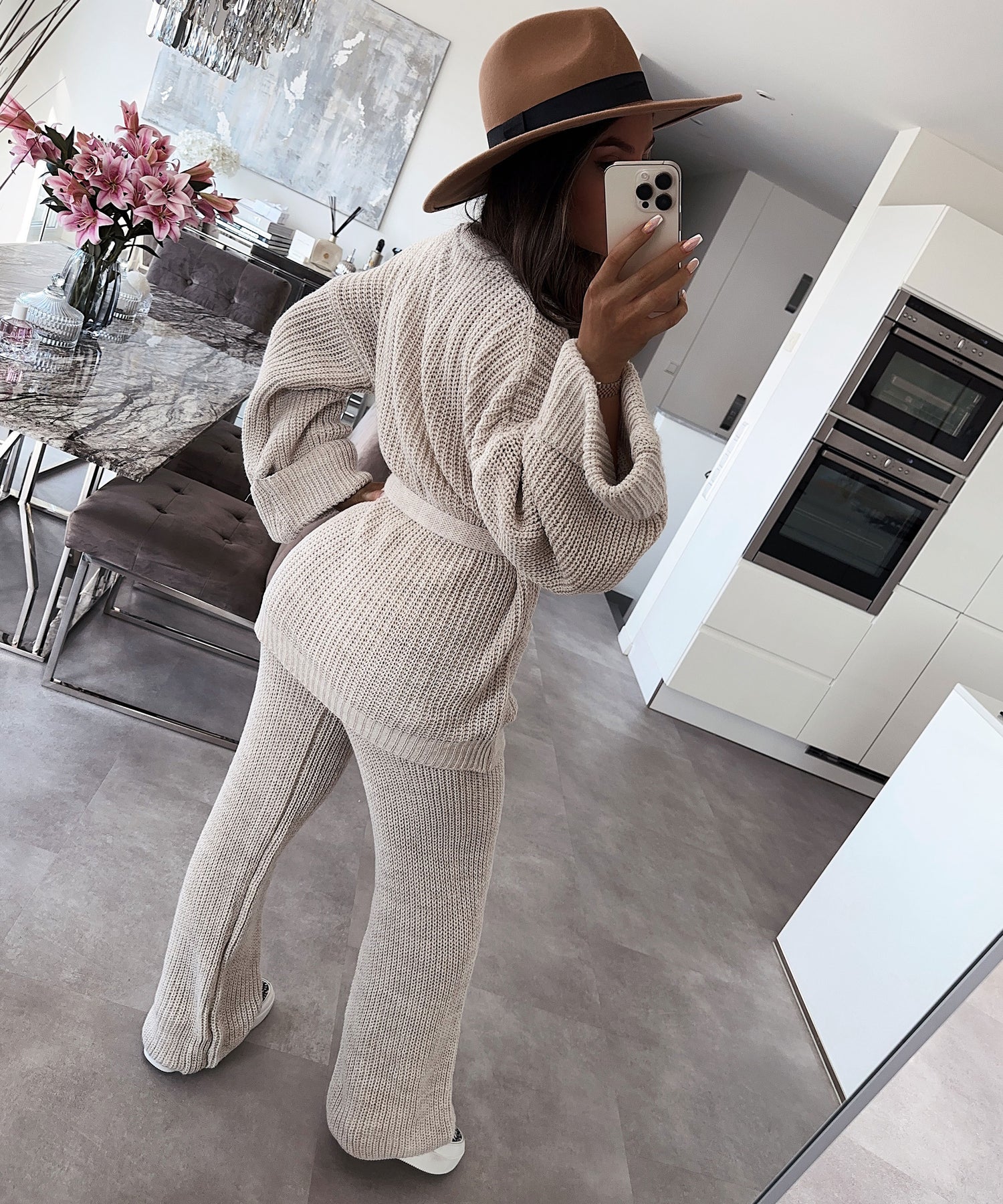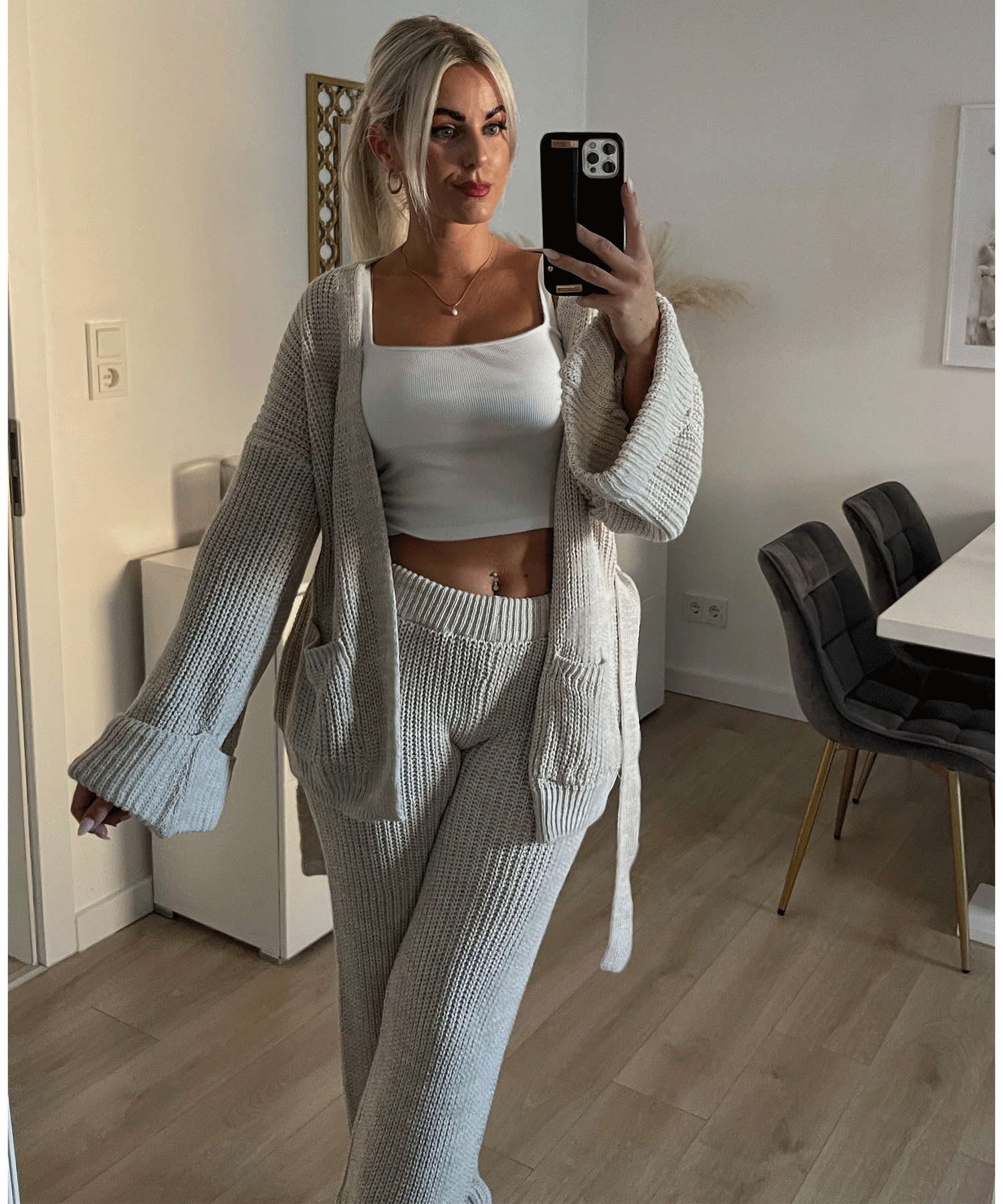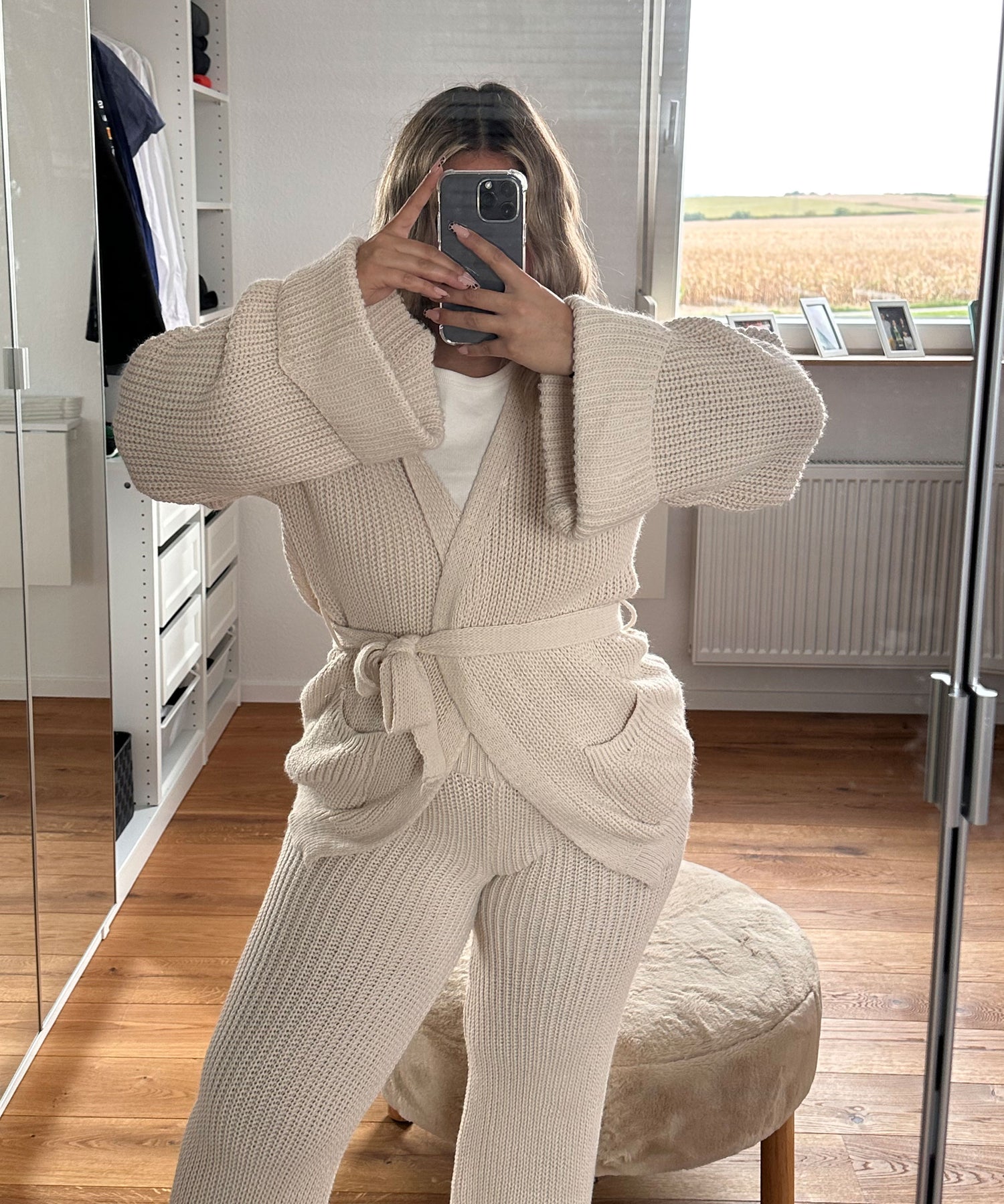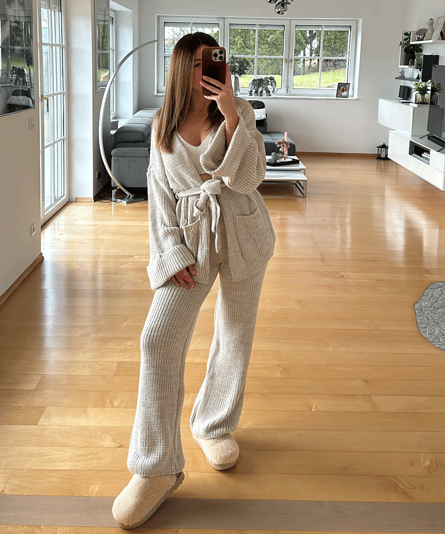 Super weiches Strick Set. Was auch tolle einzeln getragen werden kann. Model ist 1,65m. Einheitsgröße passt XS-XL. Hosen Gesamtlänge ca. cm.
